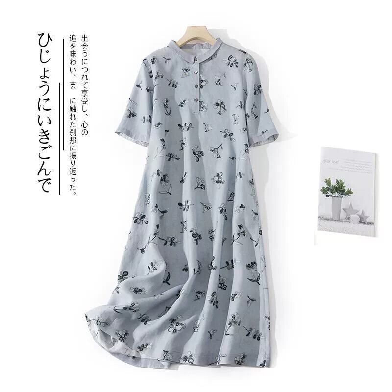 カウンター削除クリアランス最後の在庫女性の芸術的な年齢を軽減する花柄リネンドレスルーズコットンとリネンシャツロングスカート sine17881957546