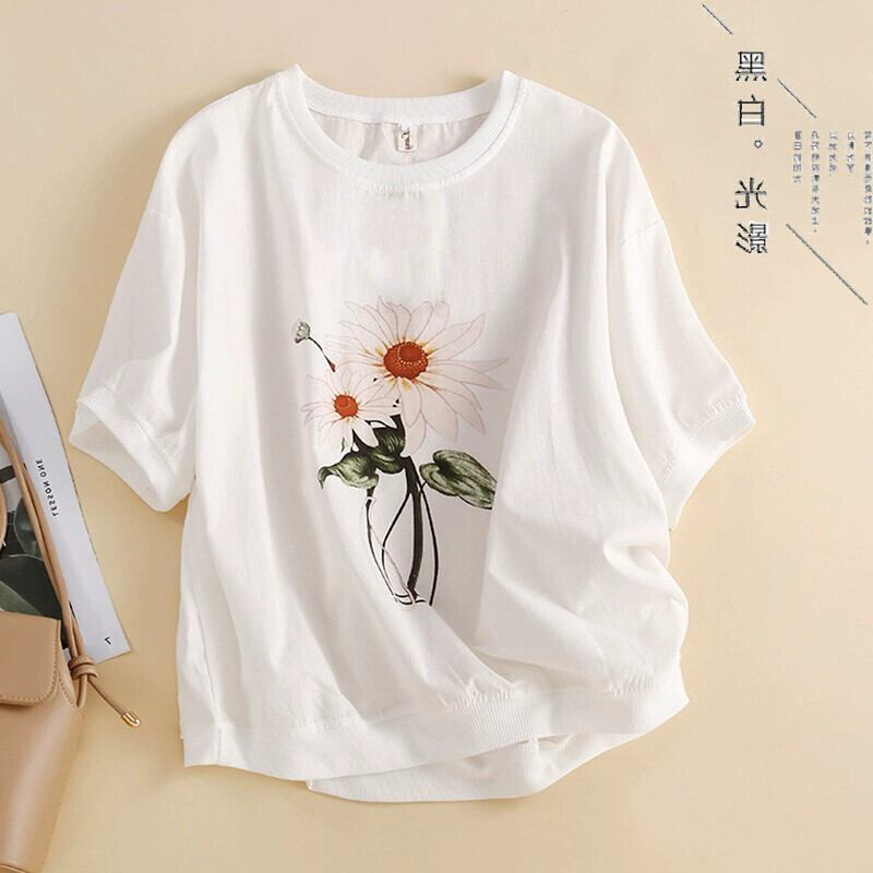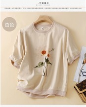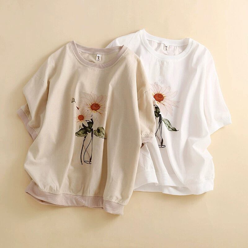 カットラベルショッピングモール撤退シングルレディースレトロプリントコットンとリネン半袖Tシャツカジュアルルーズラミー薄手トップ sine70535233410
