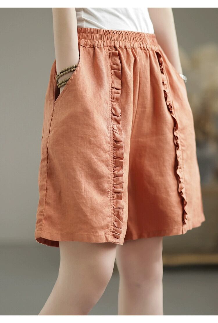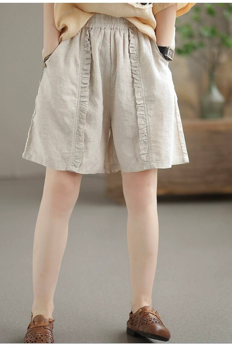 漏れを拾ってください〜カウンターは注文を取り下げました。大手ブランドのカットレーベルのレディース コットンとリネンのワイドレッグ パンツ、レトロな菌糸で縁取られたカジュアルなリネン ショートパンツ。 ショーツ ブルマー sine11893150146
