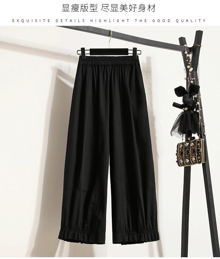 Eign Trade Export ビッグネーム独身女性用カジュアルワイドレッグパンツ、カットオフテール付き、薄手、ルーズ、スリム、ハイウエスト、薄手ストレートレッグクロップドパンツ sine83571457632