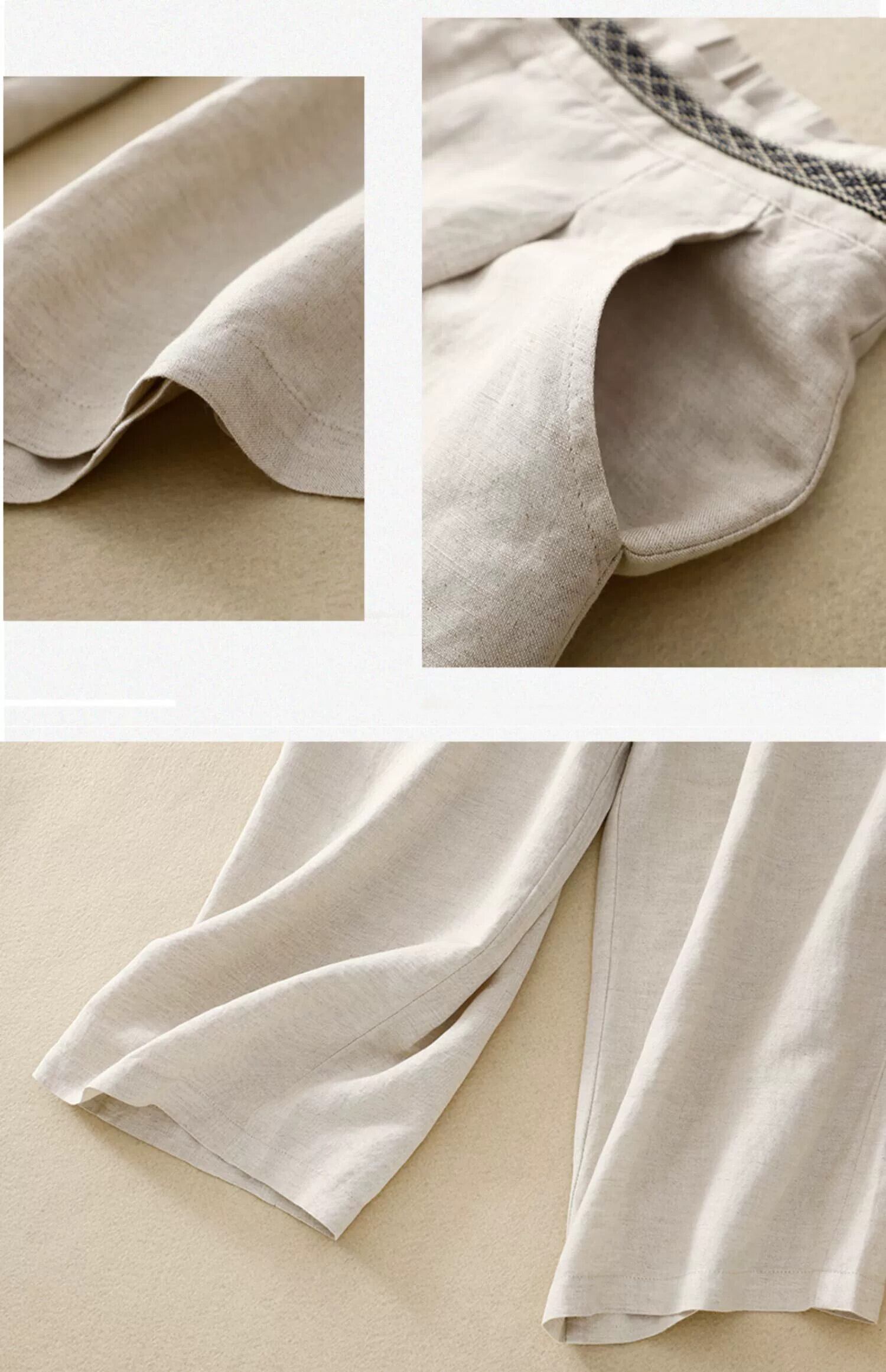 ese オリジナルシングル eign 貿易ビッグネームルーズドレープ綿とリネンワイドレッグパンツ女性ハイウエストストレートリネンカジュアル 9 ポイントパンツ夏 コットン サマー 夏物 sine47075074737