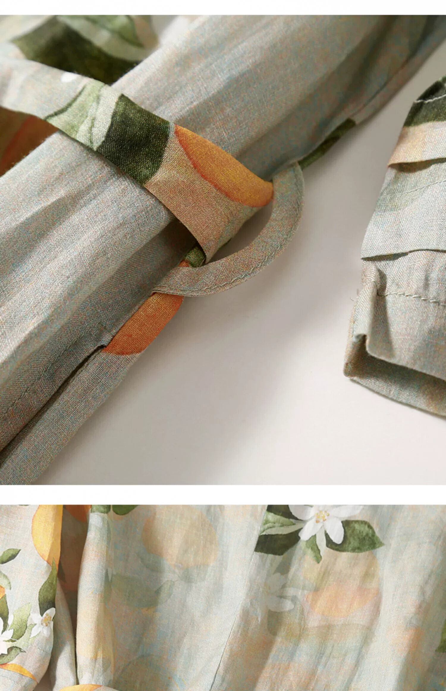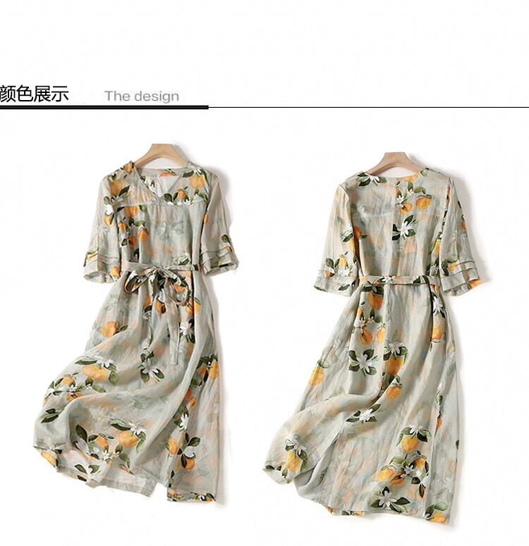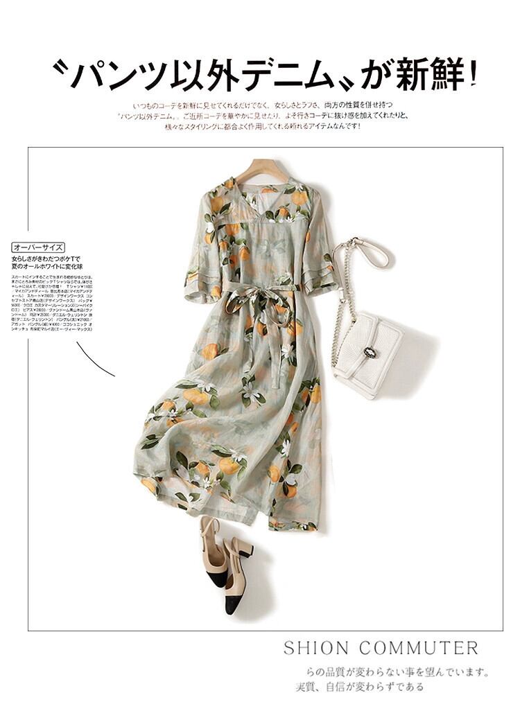 カットレーベルショッピングモール撤退レディースカジュアルウエストレースアップコットンとリネンドレス気質プリントVネックラミーローブ sine69625138757