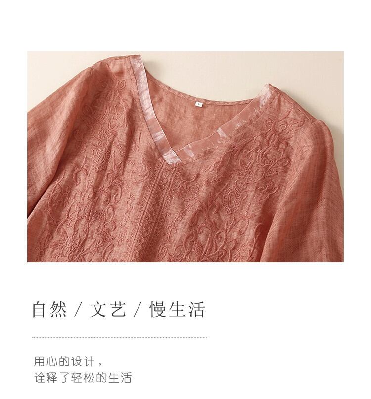 eign trade ese オリジナルビッグネームカットラベルレディース刺繍ラミートップルーズ気質 V ネックコットンとリネン半袖シャツ夏 レッド サマー 夏物 Vネック sine62566626553