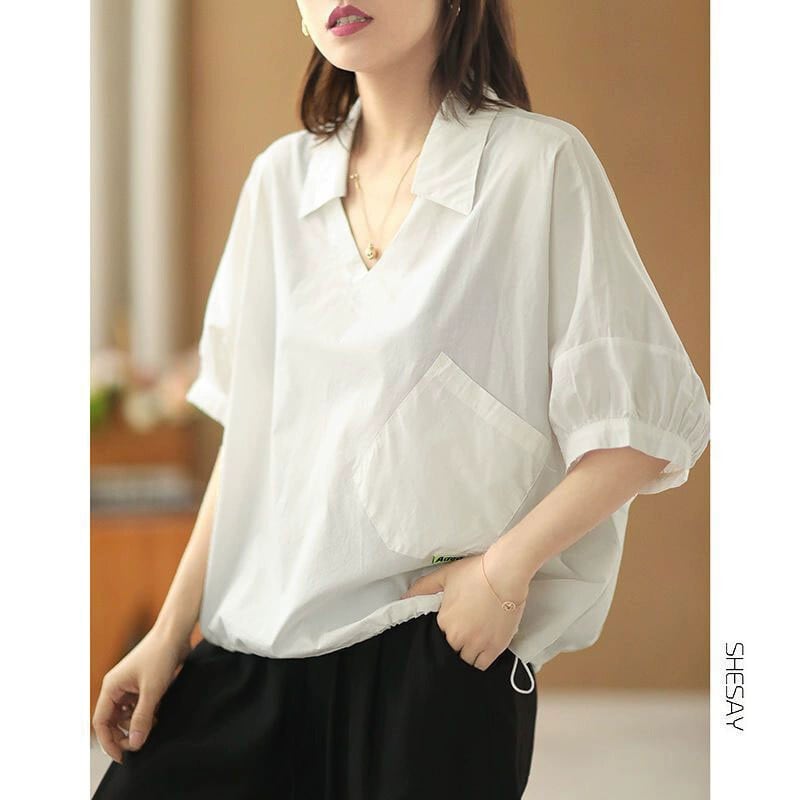 ディスカウントストア有名カウンター出金手続きシンプル万能半袖シャツレディース夏ルーズスリムVネックトップスTシャツ サマー 夏物 sine65949820322