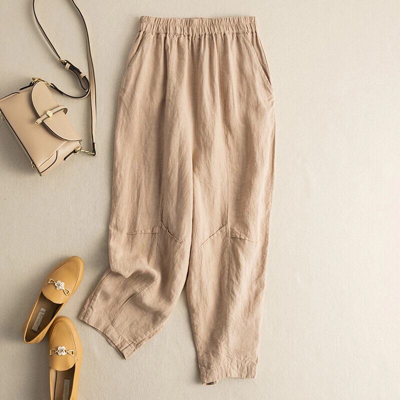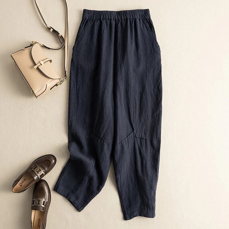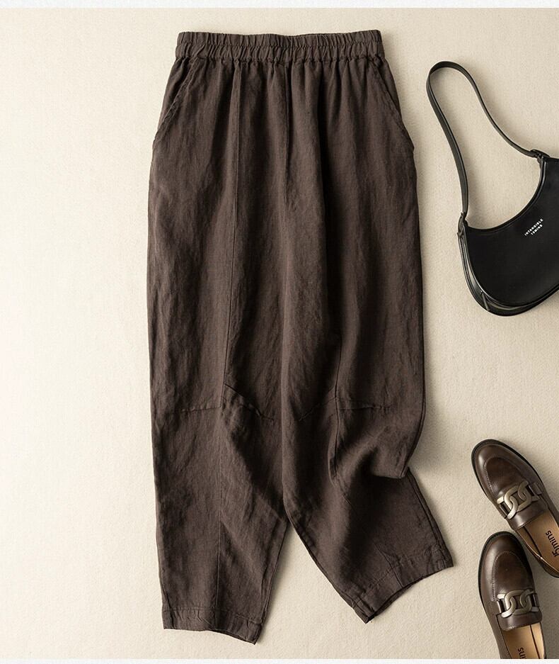 クリアランスリーク〜婦人服、綿麻9点ハーレムパンツ、ウエストゴム、カジュアルリネンキャロットパンツ コットン エラスティック 伸縮 sine63394377719