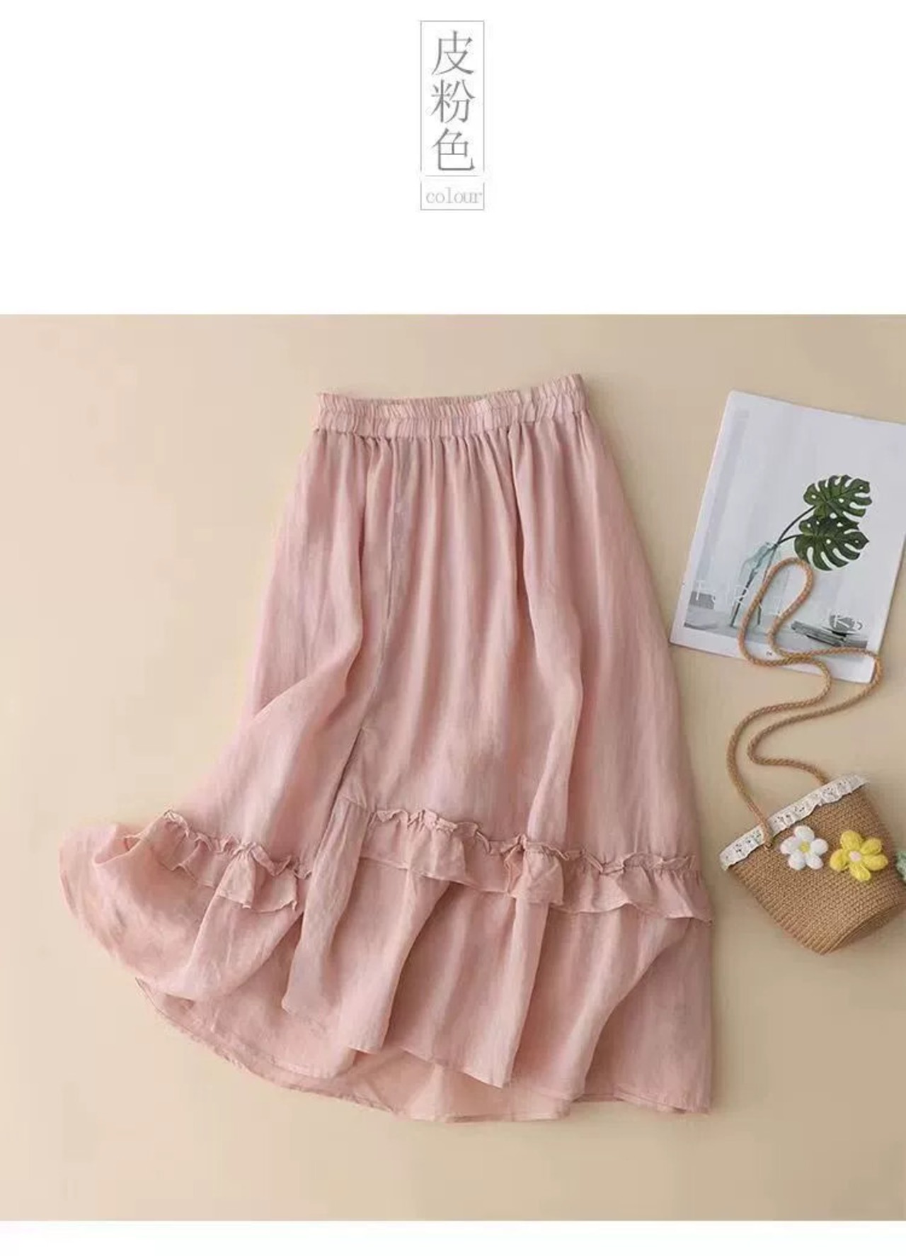 Eign Trade Counter ブランドテールグッズルーズで軽いレース綿とリネンのスカートの女性の ese 弾性ウエストリネン A ラインスカート コットン エラスティック 伸縮 Aライン sine76445419412
