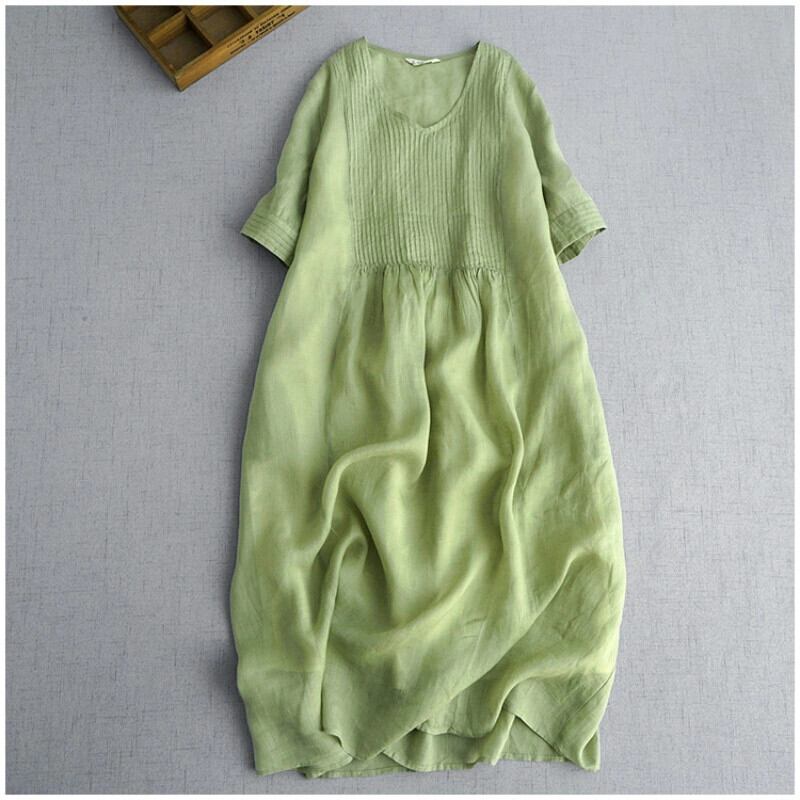 カウンター削除クリアランス最終在庫レディース ese 綿とリネンのオルガン プリーツ ドレス ルーズ リネン半袖 A ライン スカート コットン Aライン sine87502280984