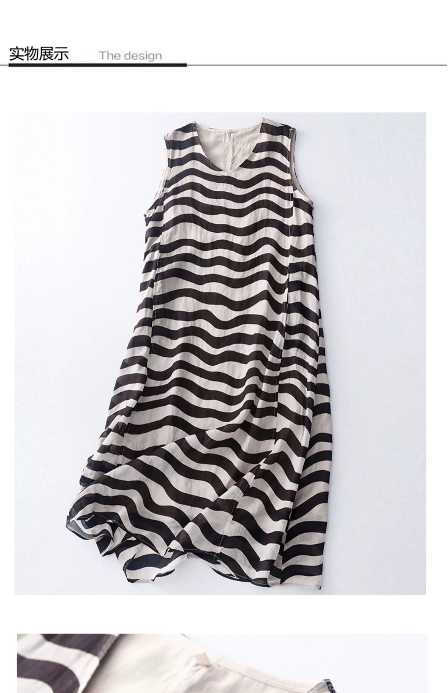 クリアランスカウンター最後の在庫女性の綿とリネンのストライプのベストドレスルーズ V ネックリネンノースリーブロングスカート コットン Vネック sine70665327216