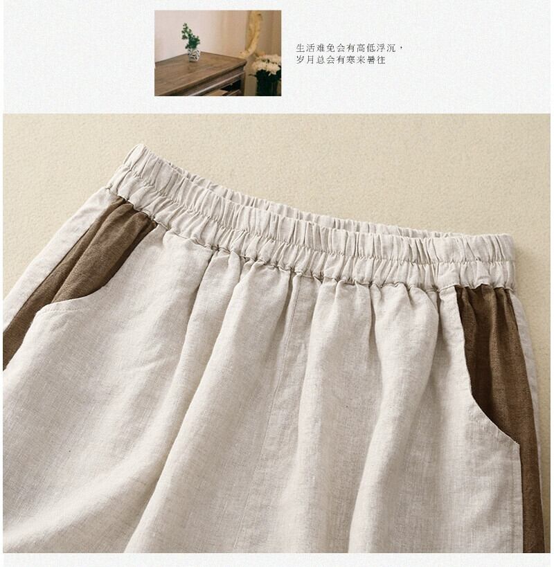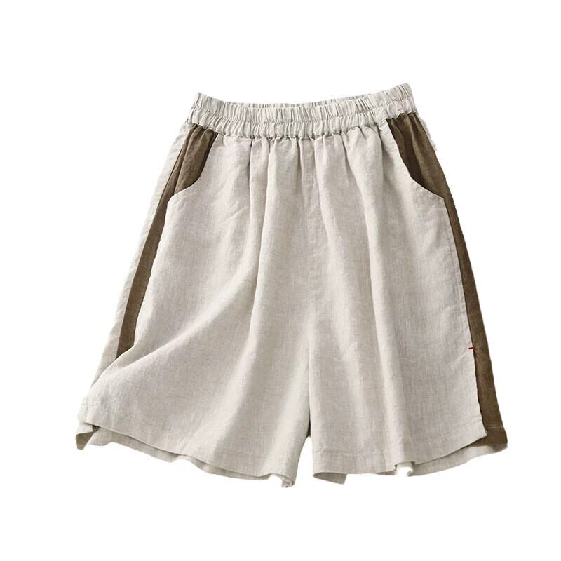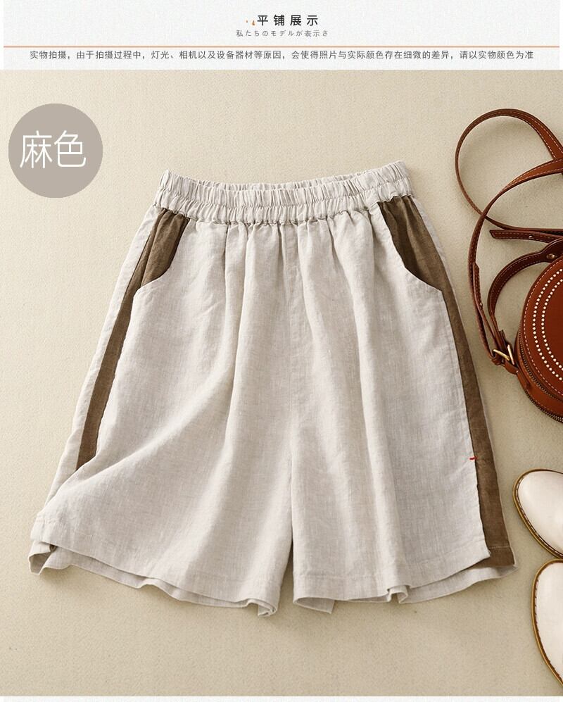 eign trade ese オリジナルハイエンドブランドコントラストカラースプライシングコットンとリネンワイドレッグショーツ女性ハイウエストカジュアルリネン七分パンツ ブルマー sine24567414660