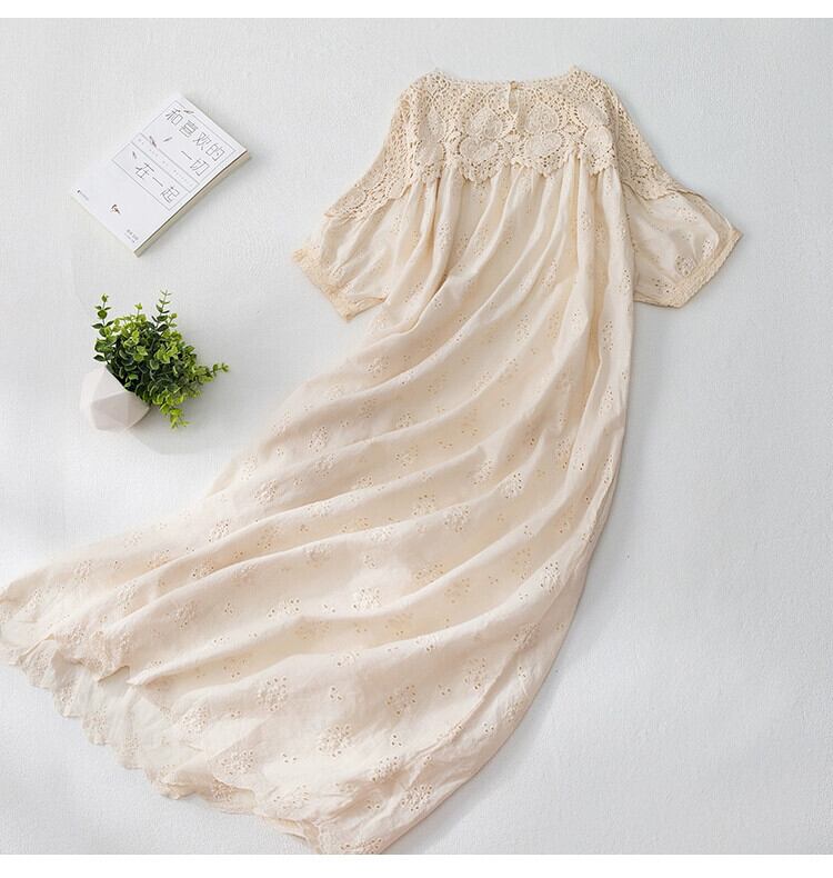 eign trade イタリアブランドテールグッズカットラベルかぎ針編みレース大きな裾ラミーロングスカート気質刺繍綿とリネンのドレス レッド コットン sine35029111421