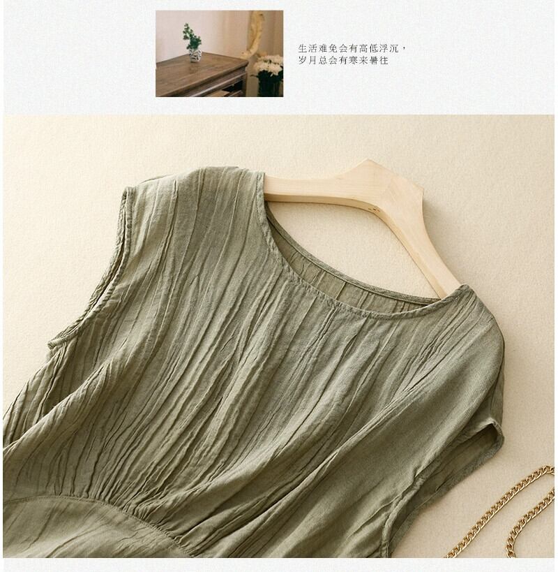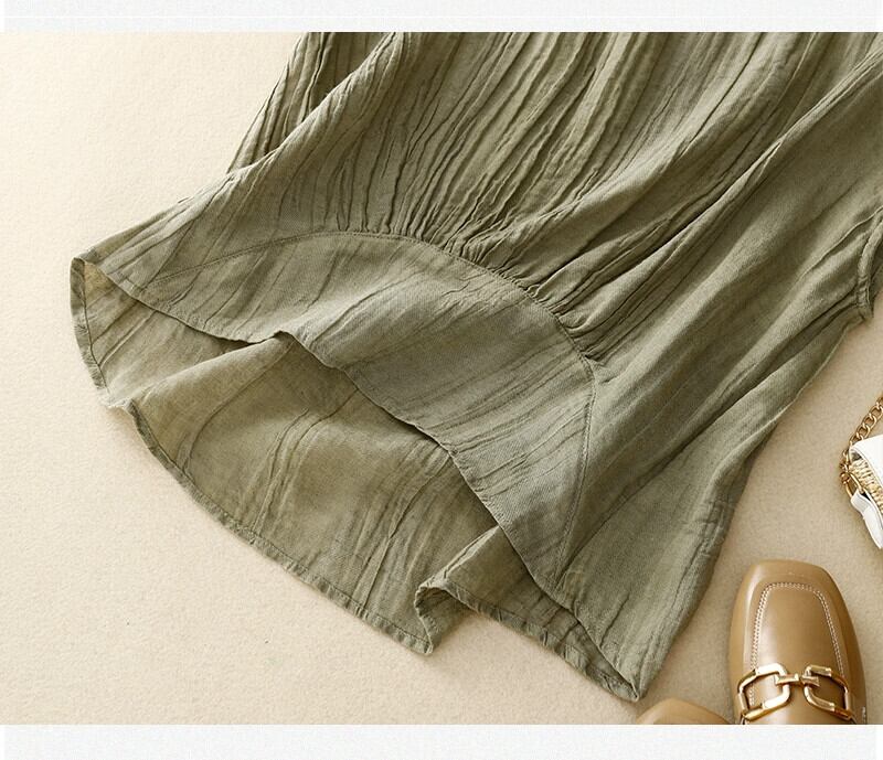 ビッグブランドテールグッズのクリアランスカウンター取り外しレトロコットンとリネンの袖付きTシャツレディースルーズカジュアルプリーツリネントップ薄い sine466120978