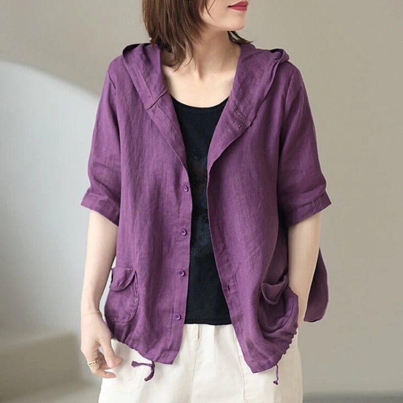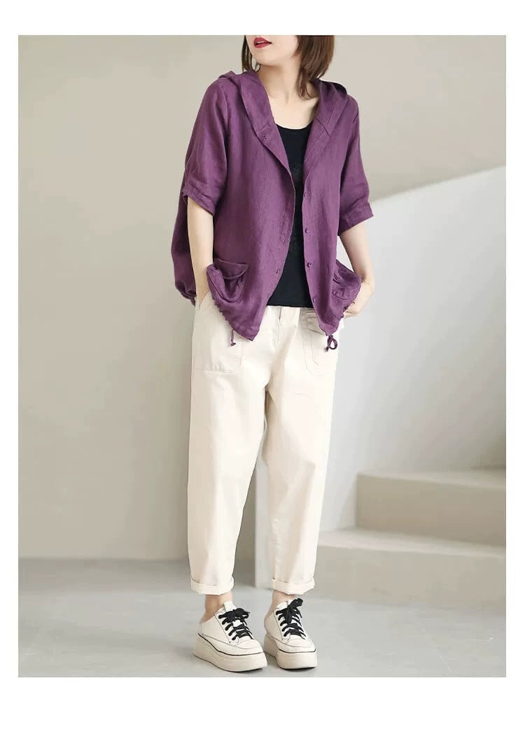 クリアランスカウンター最後の在庫レディースリネンショートフード付きジャケット夏ルーズコットンとリネン日焼け止めシャツトップ サマー 夏物 sine29660089480