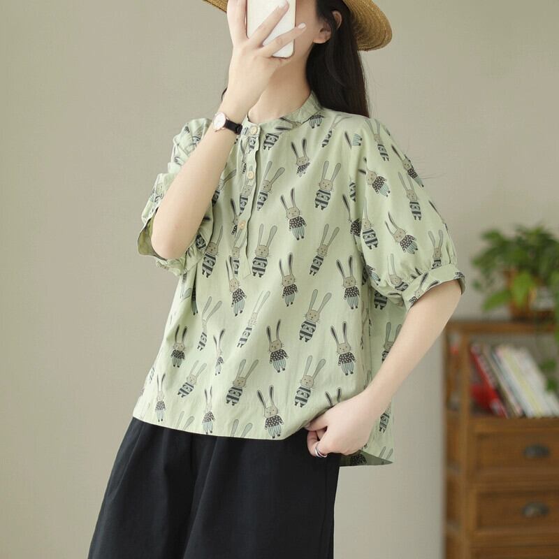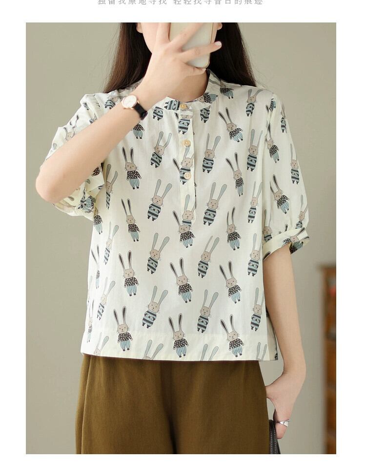 クリアランスカウンター引き出し最後の在庫年齢削減漫画プリントシャツトップ夏カジュアル半袖シャツ婦人服 サマー 夏物 sine12071874836