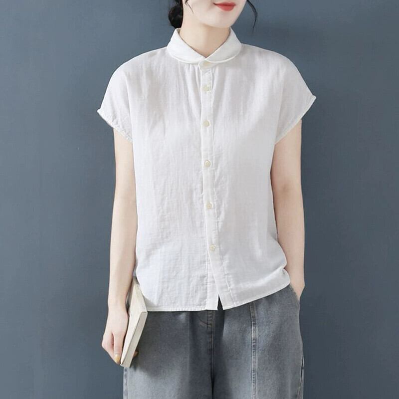 有名ブランドの在庫外のコットンとリネンの女性用シャツ、レトロでゆったりとした万能シャツ、リネンの半袖トップス、薄手のアイテムをクリアランスカウンターで撤去します。 sine97700622013