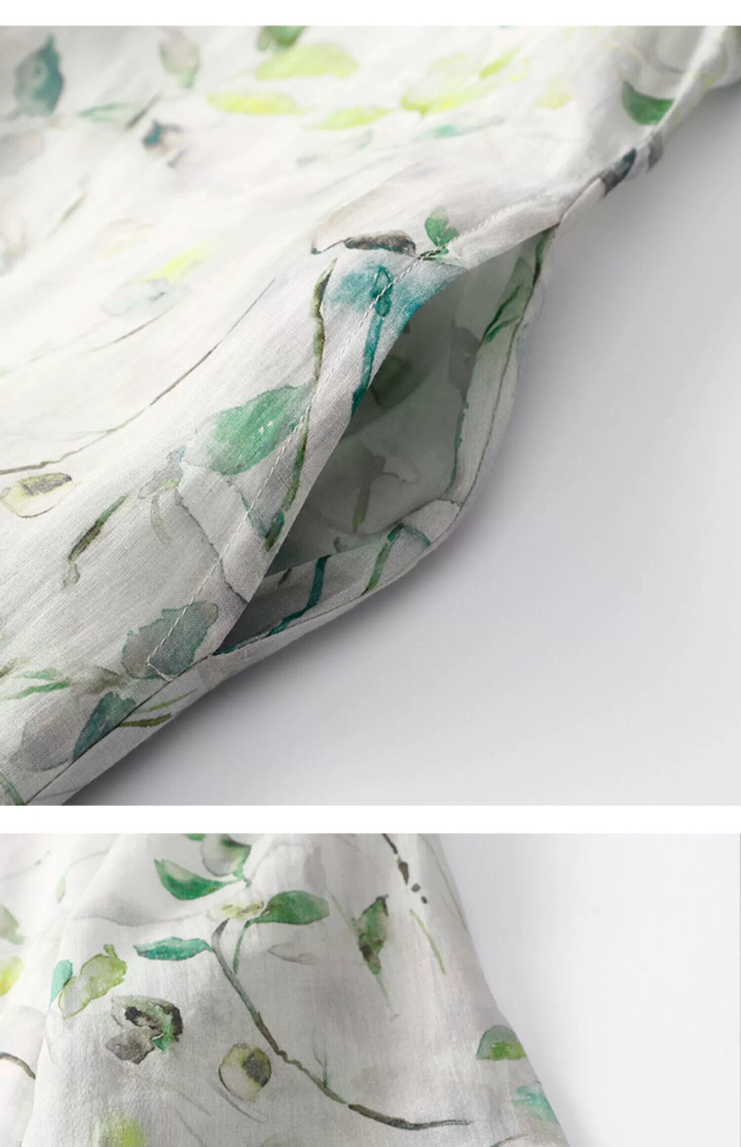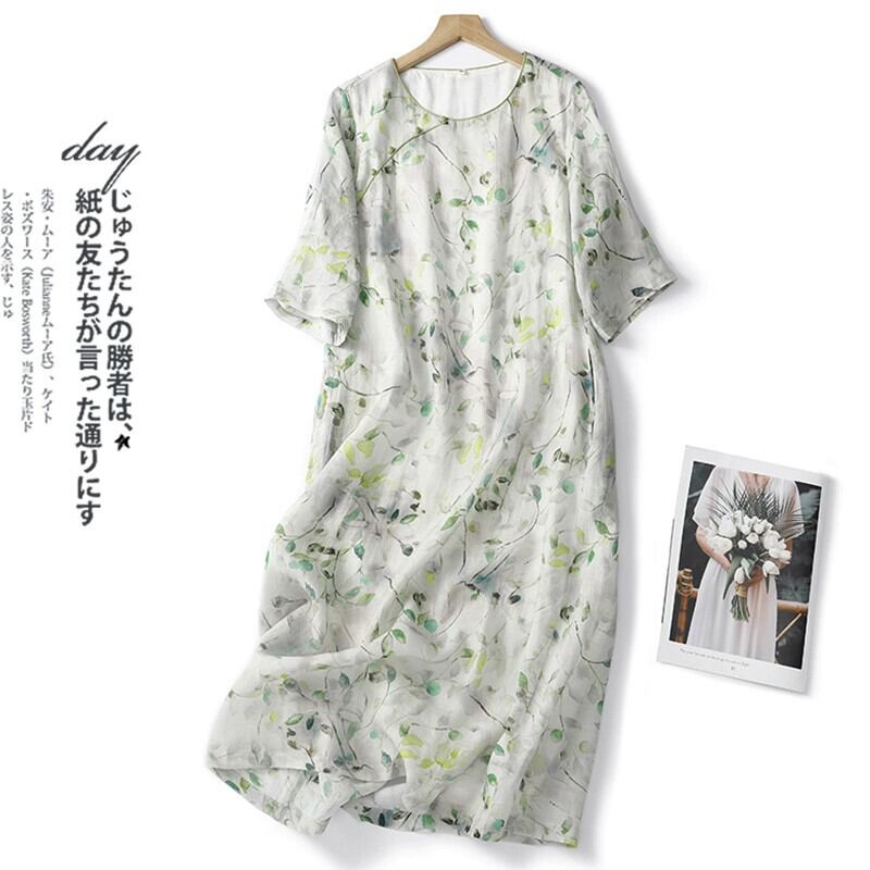 クリアランスカウンター最後の在庫の女性の中国風花柄斜め前立てチャイナドレスルーズコットンとリネン半袖ドレス sine74966972569