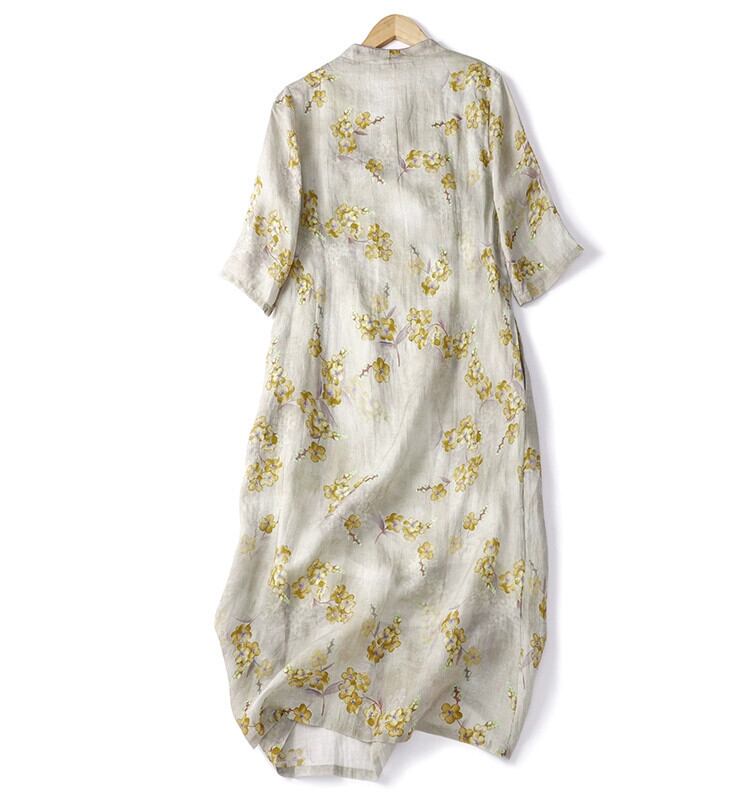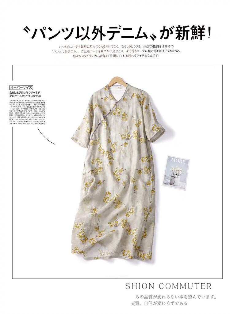 永貿易輸出ビッグブランド尾品撤退女性の中国風の綿とリネンのドレスレトロプリント斜めラペルラミーチャイナドレス コットン sine67742537265