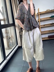 カットラベルショッピングモール撤退女性のレトロな薄い V ネックラミー薄いトップカジュアルルーズ花柄コットンとリネンのシャツ Vネック sine20212004647