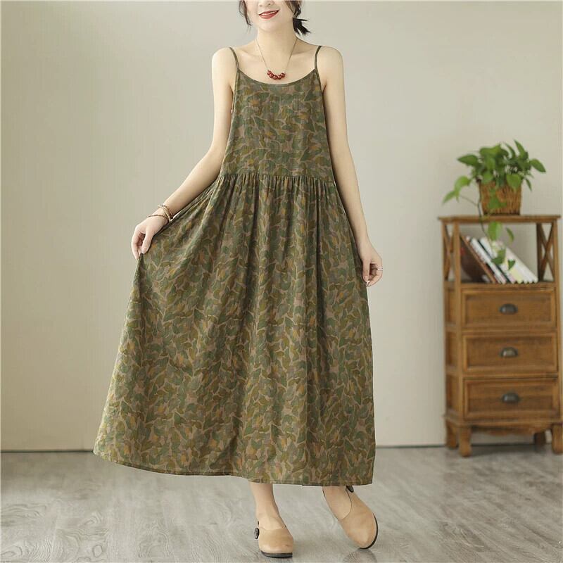 クリアランス クリアランス カウンター 牛グッズ 撤去 レディース レトロ 花柄 ノースリーブ ワンピース ルーズ リネン キャミソール ロングスカート sine33337729678