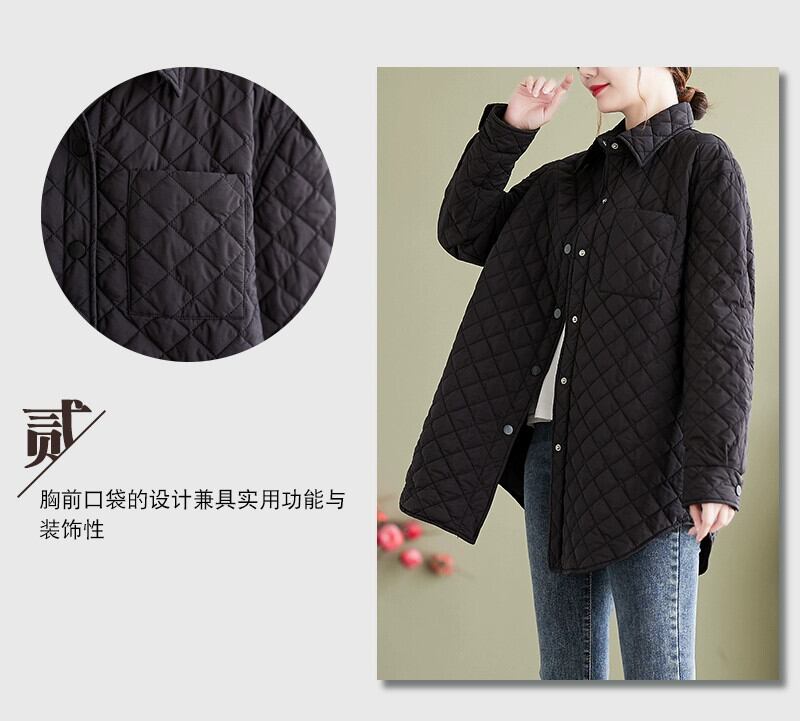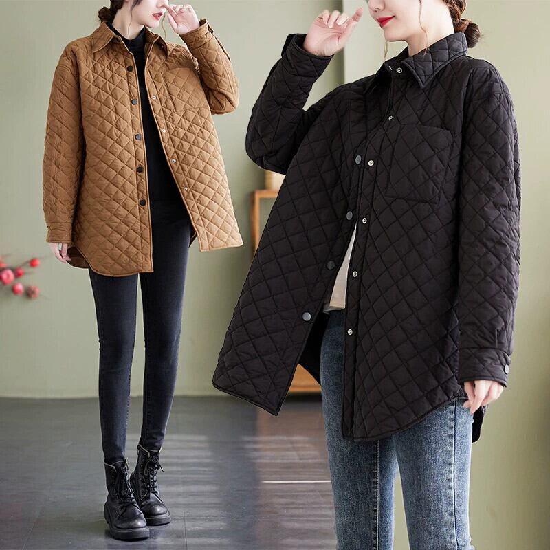 Eign Trade 輸出ブランドテールグッズ女性のキルティング肥厚暖かい綿コートレトロ菱形ミッドレングスダウンジャケット コットン sine133687455