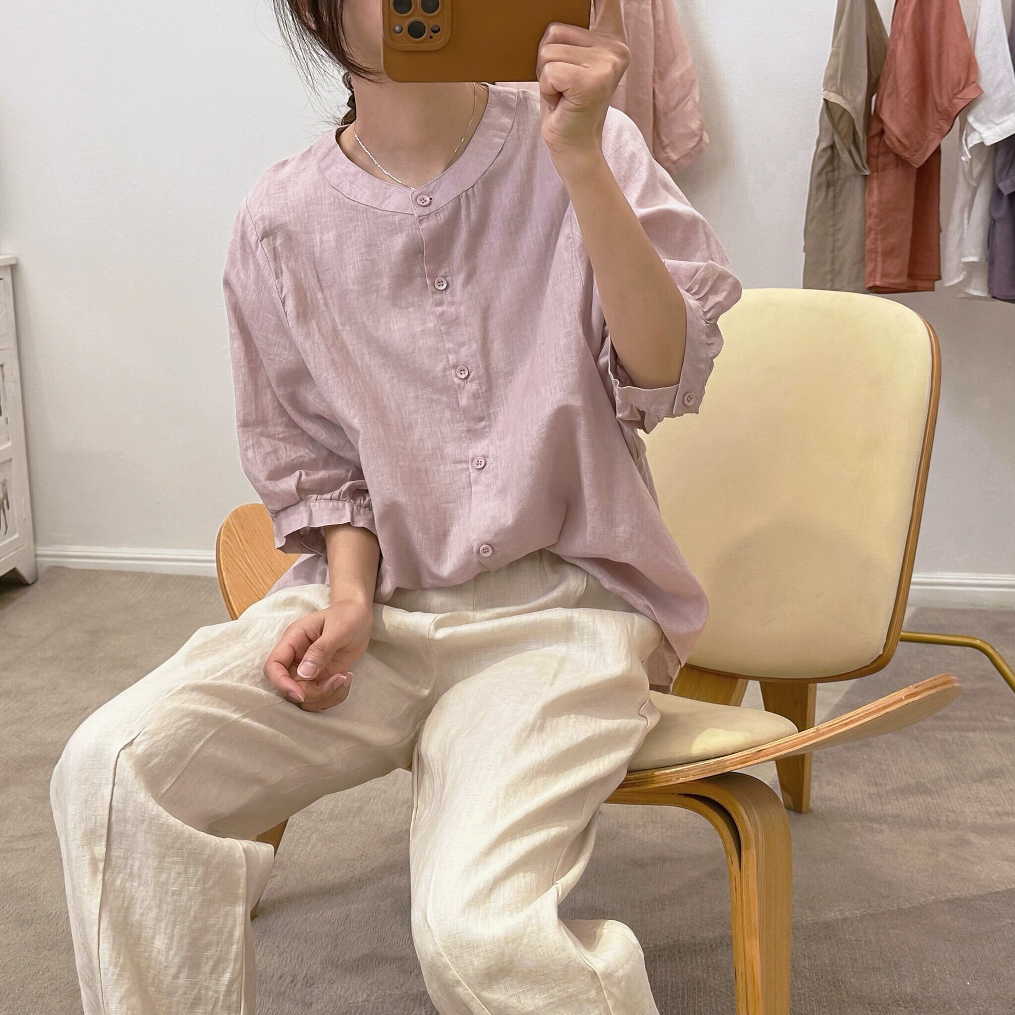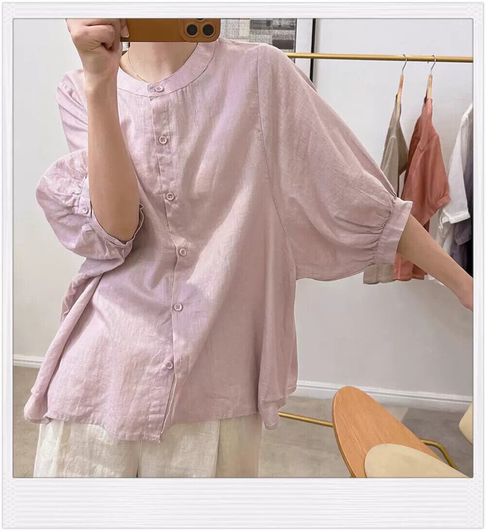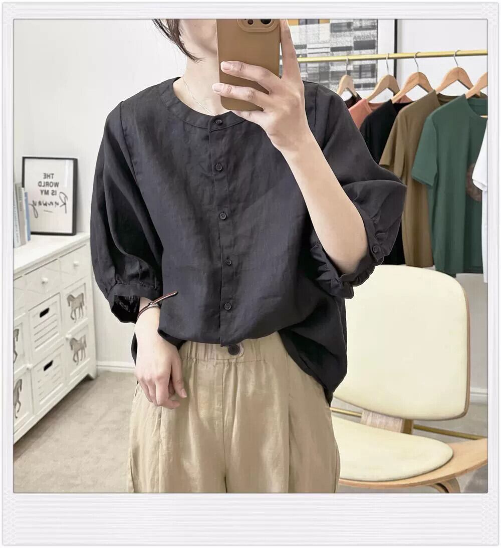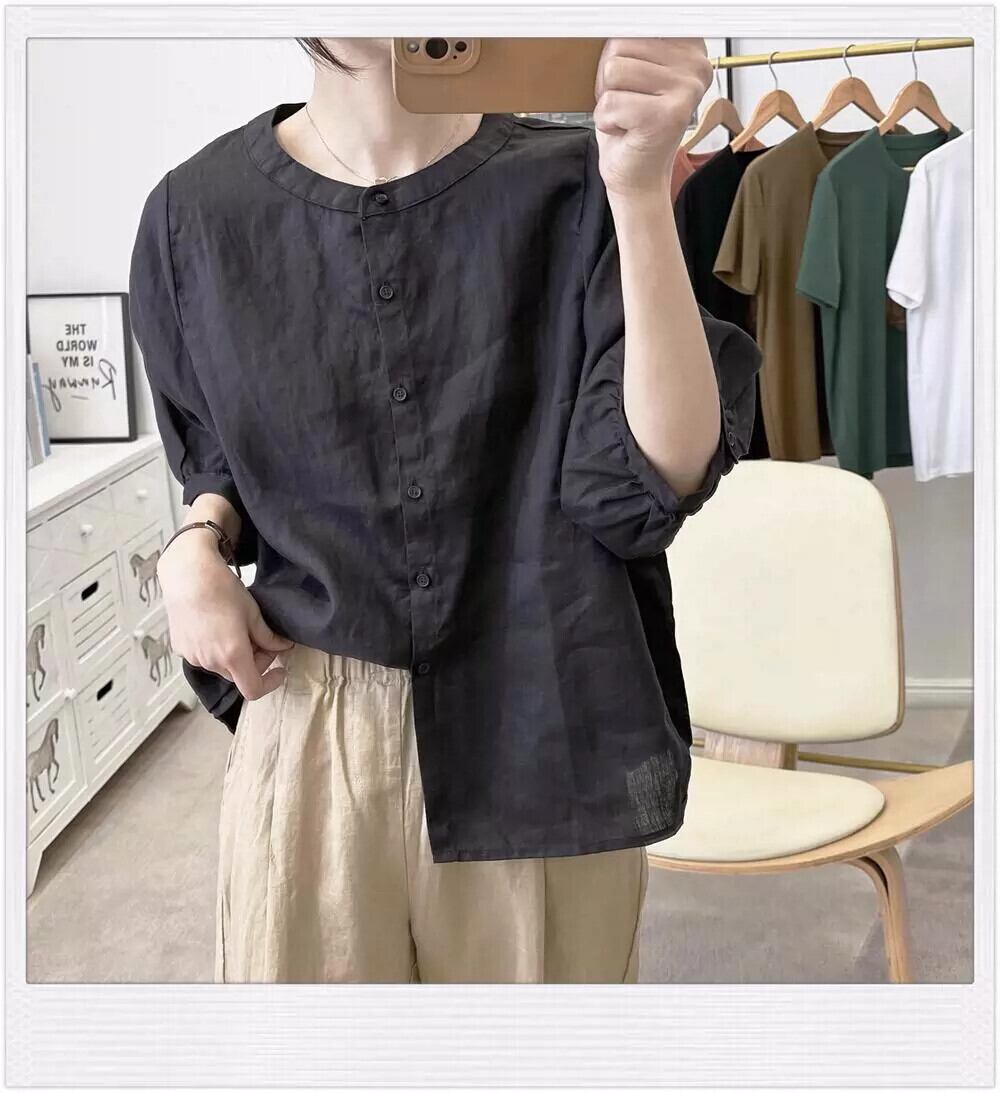 ese オリジナル シングル eign trade 有名な女性の文学的で芸術的なライト リネン ベビー トップス レトロ スリム半袖コットンとリネン シャツ sine30360142932