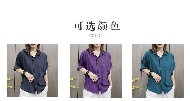 eign trade ese オリジナルハイエンドブランドレトロ綿とリネンバットスリーブシャツレディースルーズカジュアルリネン半袖トップ コットン sine13562910596