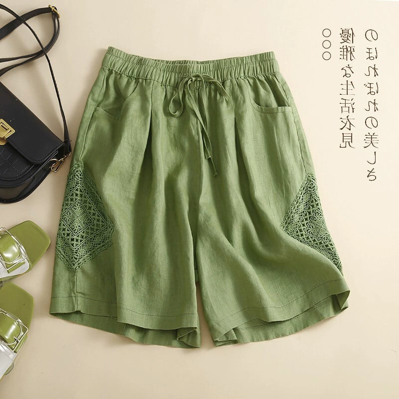Eign Trade Export Big-name Last Order 撤回レディースレトロ中空レースリネンショートパンツカジュアルコットンとリネンのワイドレッグパンツ ショーツ ブルマー sine37446516285