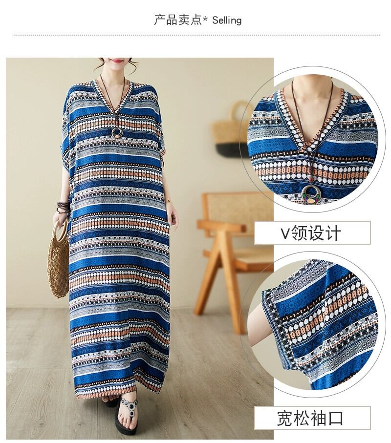 ファーストラインブランド eign trade 最終在庫 エスニック風プリントラミーワンピース ゆったり大きいサイズ ストライプ綿麻ロングスカート コットン 大きめサイズ sine28115167308