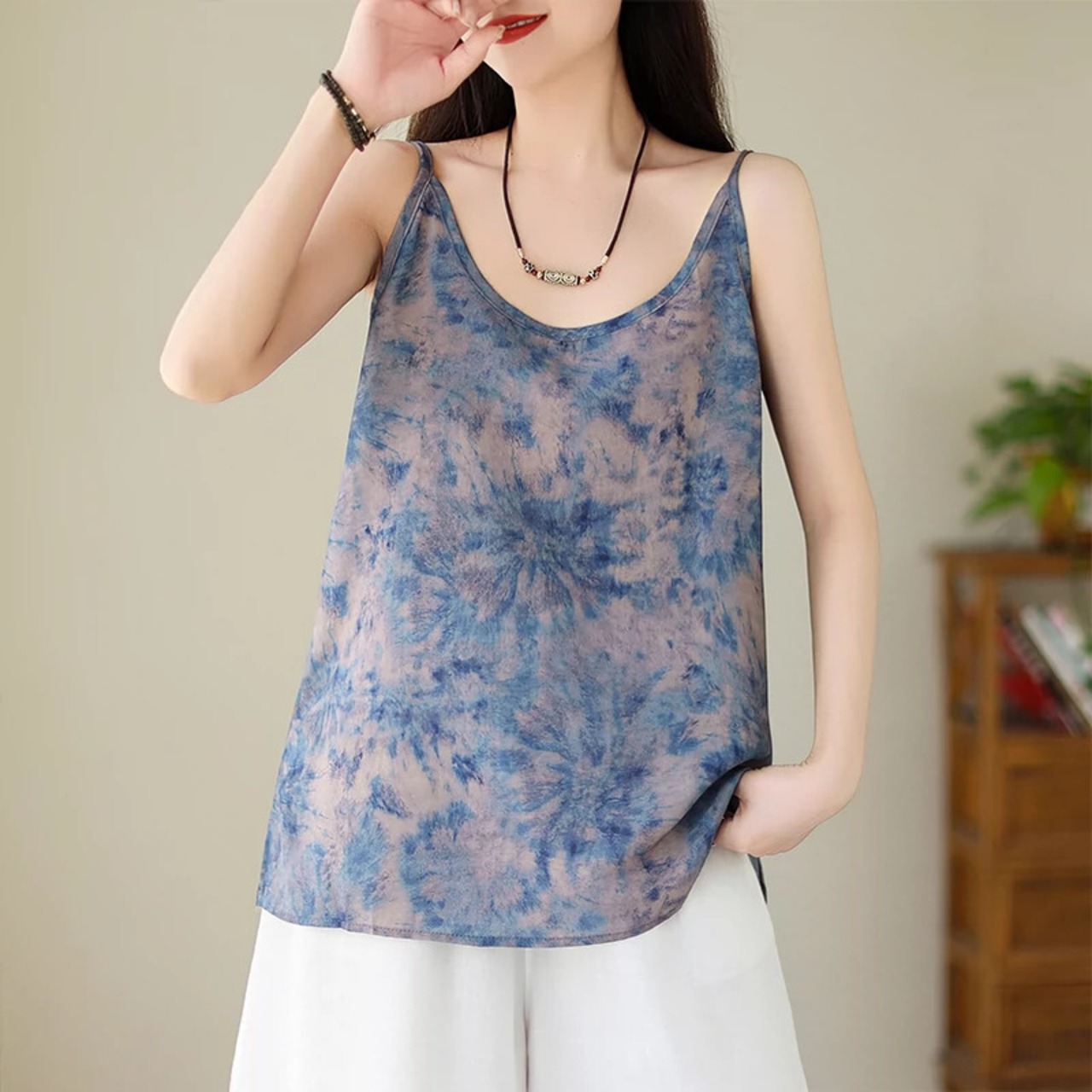 クリアランス漏れ〜タイダイプリント綿麻キャミソールレディース軽くてゆったりリネンインナートップ コットン sine70534489910