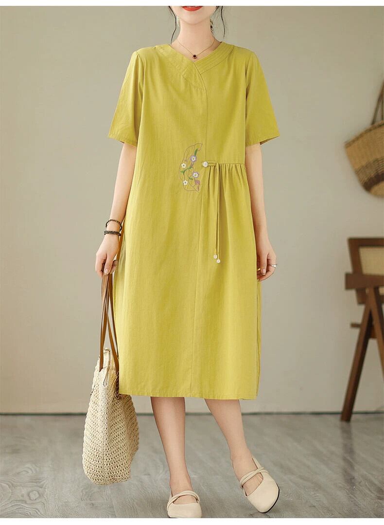 有名人の在庫切れレトロ刺繍入りコットンドレスレディースルーズ痩身半袖Aラインロングスカートのクリアランスカウンター削除 レッド sine45376043188
