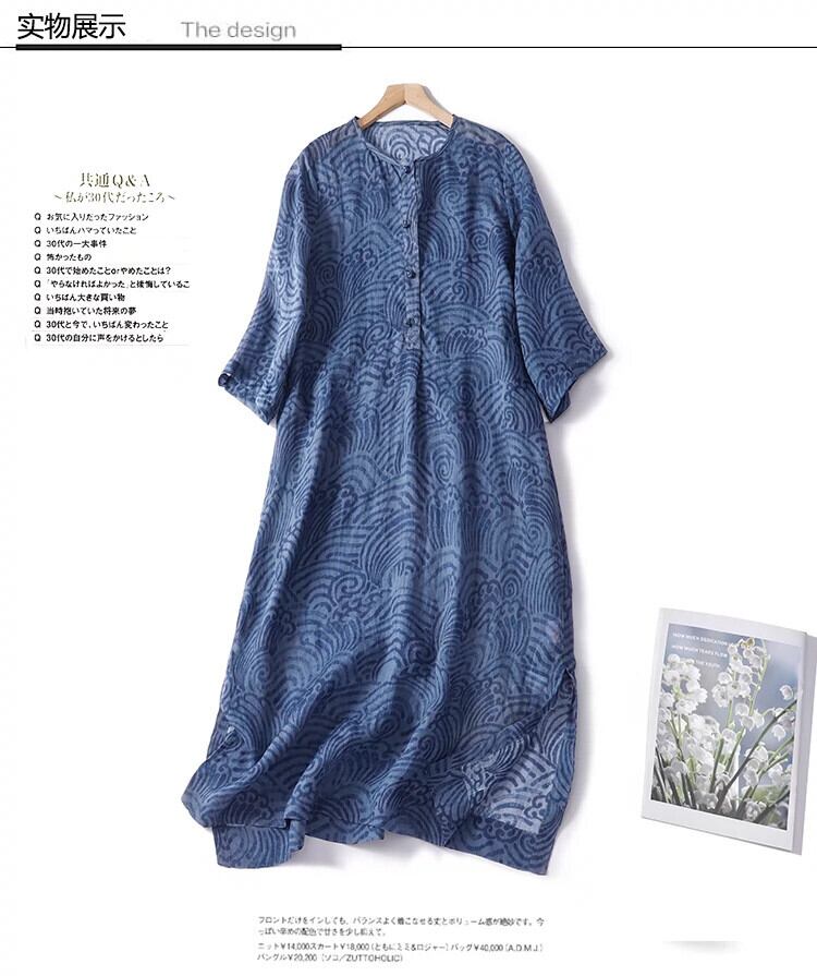 クリアランスカウンター最後の在庫レディース ese ウェーブのかかったコットンとリネンのドレスルーズリネン半袖シャツドレス sine72429188188