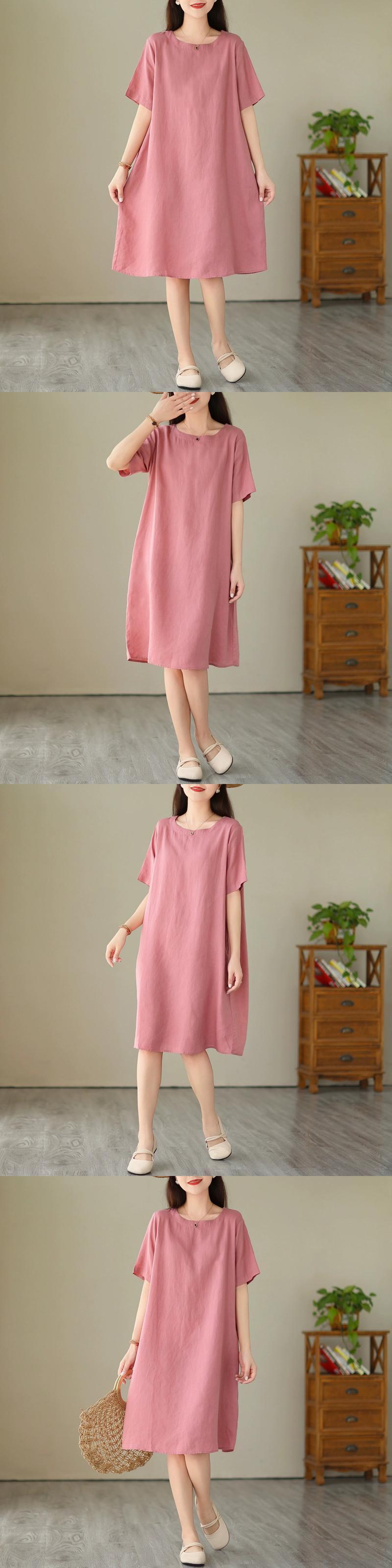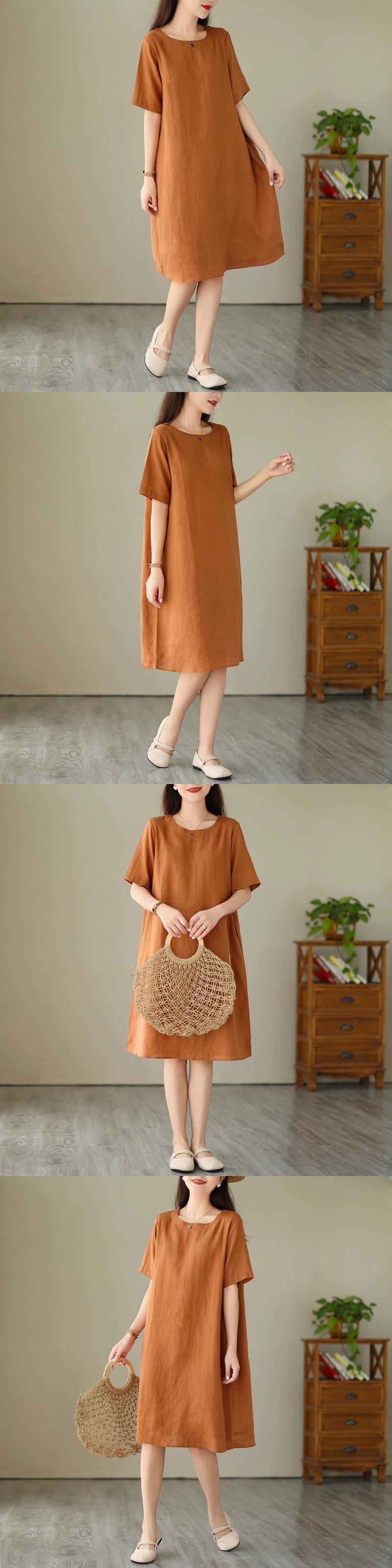 カウンタークリアランスクリアランス最後の在庫梨型フィギュアコットンとリネンドレス女性ルーズ痩身ラウンドネックリネンロングスカート Oネック sine8693135298
