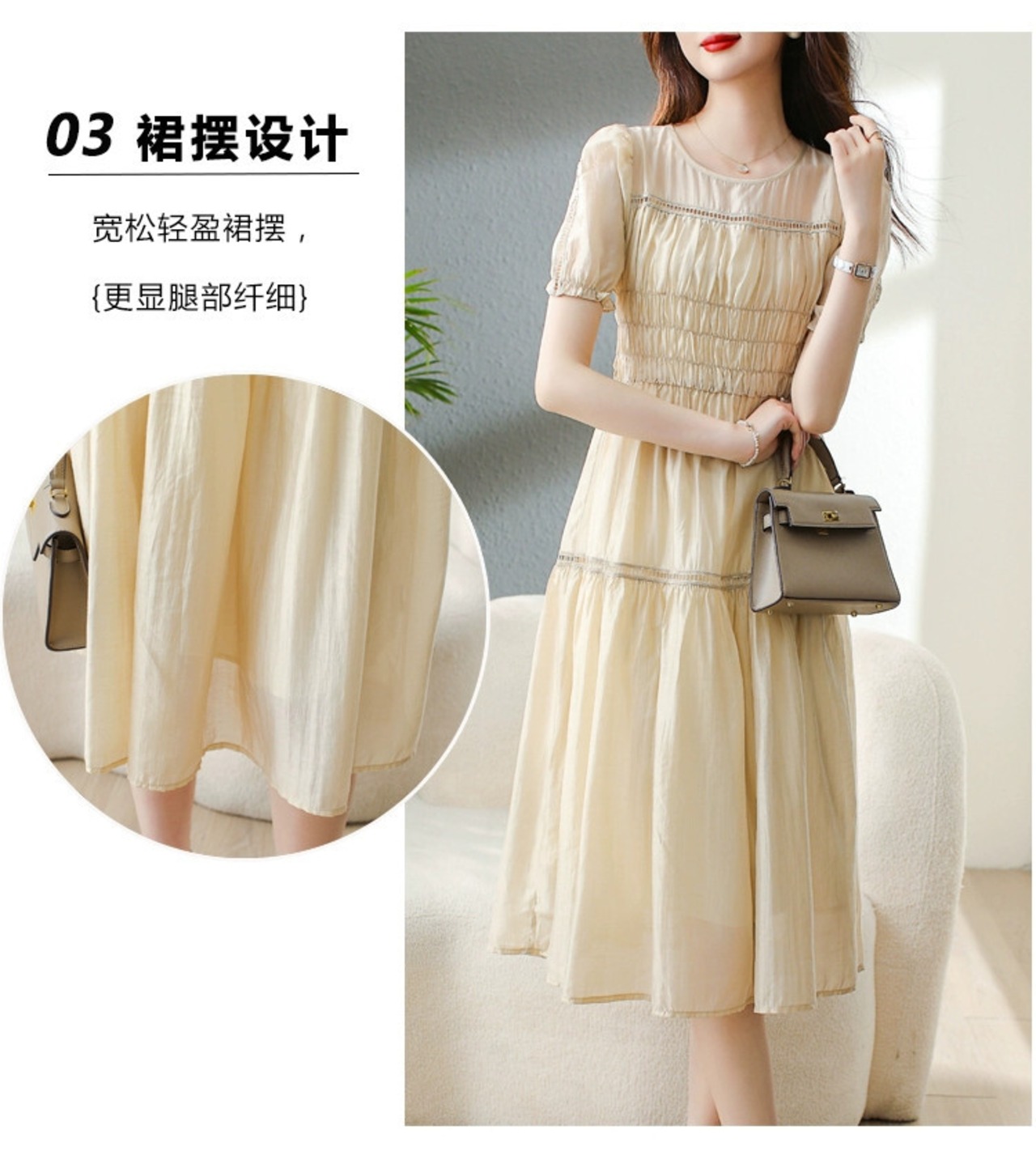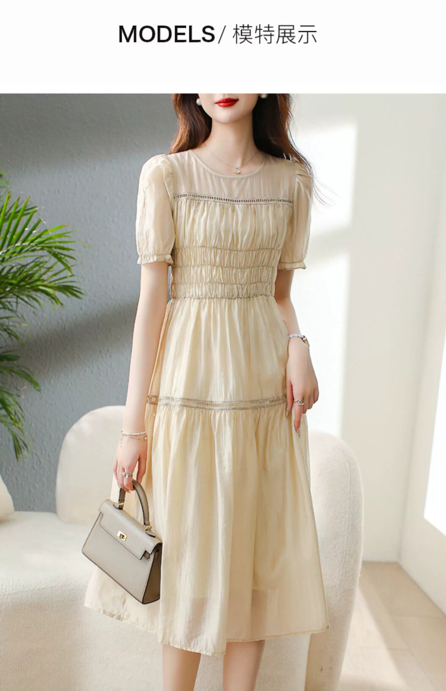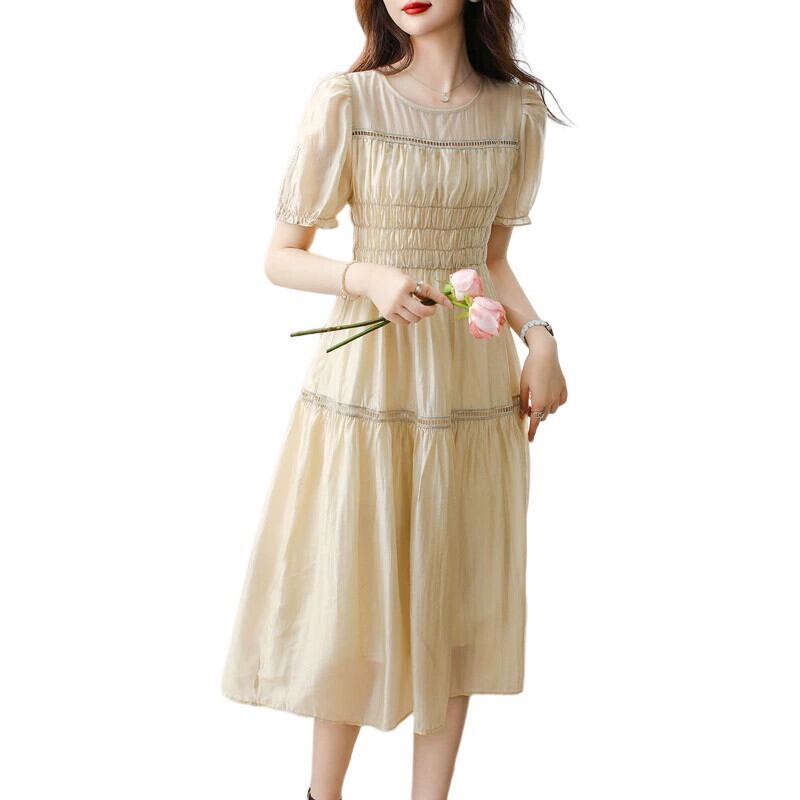 Eign Trade Export Big Tail Goods キャビネットから撤収フレンチスタイルのピンクのドレス女性のウエスト痩身パフスリーブティーブレイクドレス sine38019006731