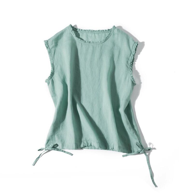 クリアランス漏れ〜エセスタイルのコットンとリネンのベストトップスの女性、ゆったりとしたカジュアルな菌糸エッジのリネンのノースリーブTシャツがカウンターから sine74606430794