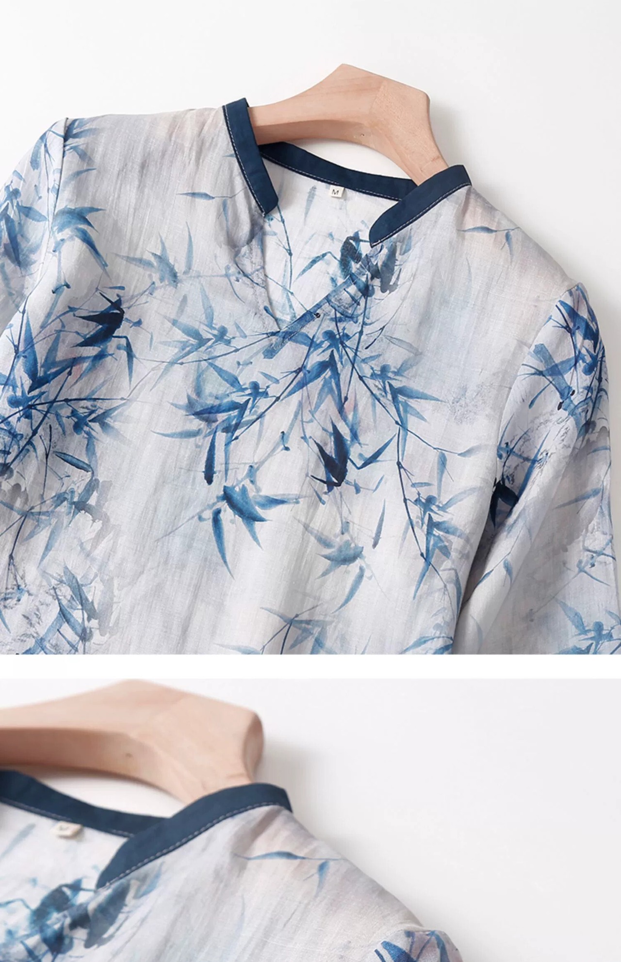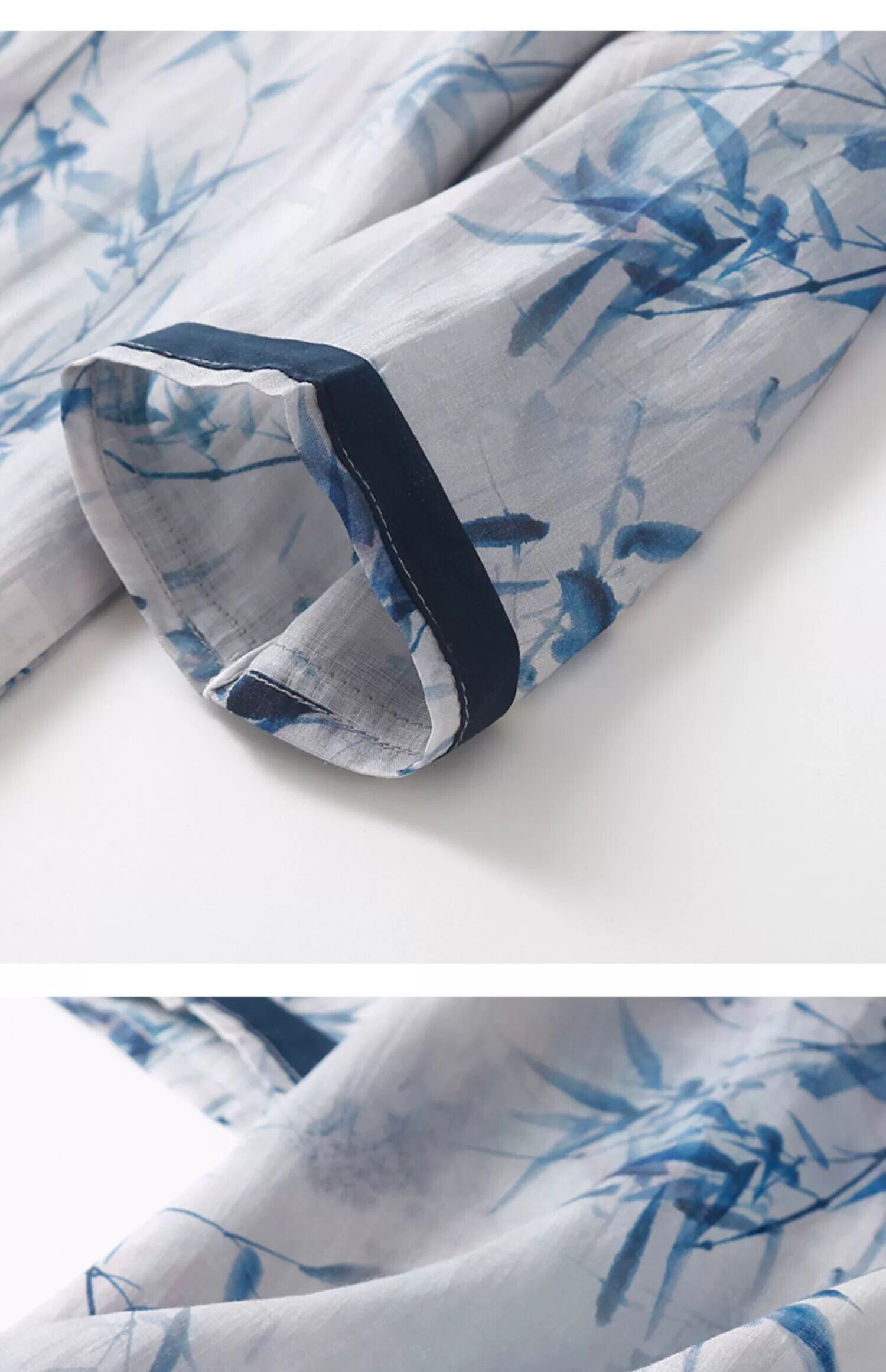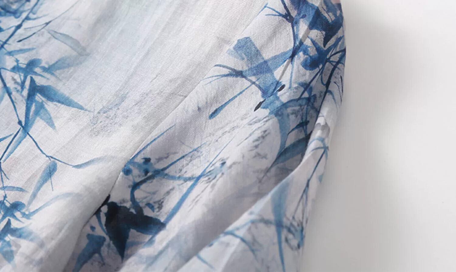 永貿易輸出ビッグブランド尾品撤退女性の中国風禅プリントドレスルーズ半袖コットンとリネンのミドル丈スカート sine95978415096