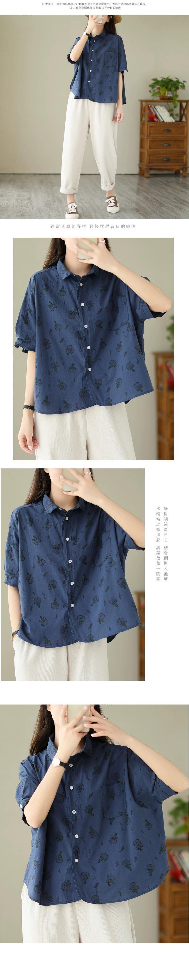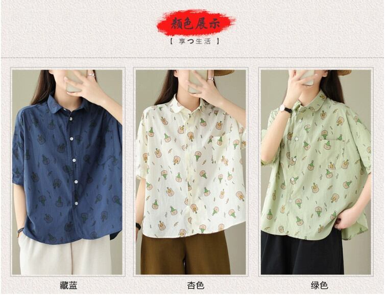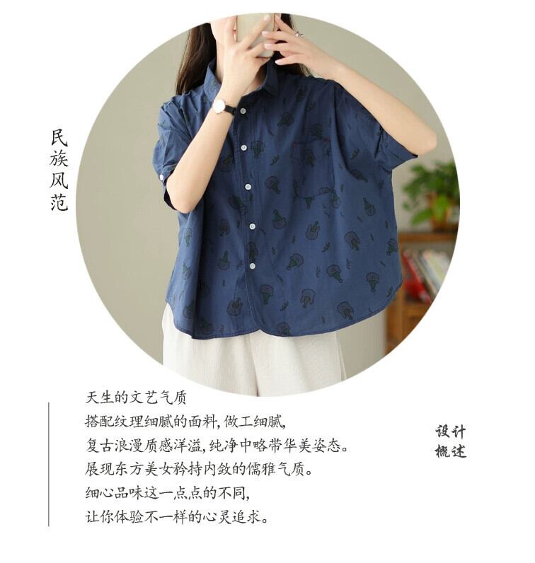 カウンタークリアランスクリアランスレディースレトロプリント半袖シャツルーズ&ライトラペルベビートップ sine19622125316