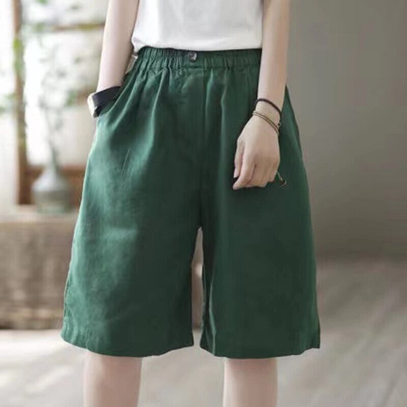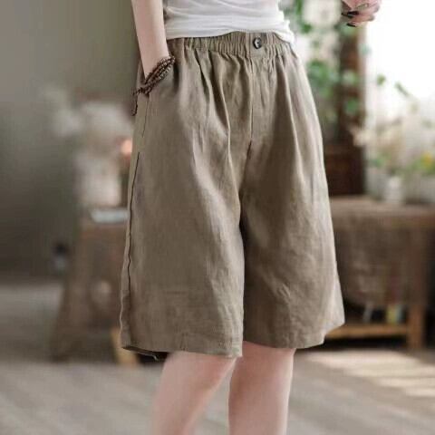 Eign Trade Export ブランドテールグッズレトロコットンとリネンカジュアルストレートレッグショーツ女性、ルーズハイウエストリネンワイドレッグショーツ ブルマー sine20048361918
