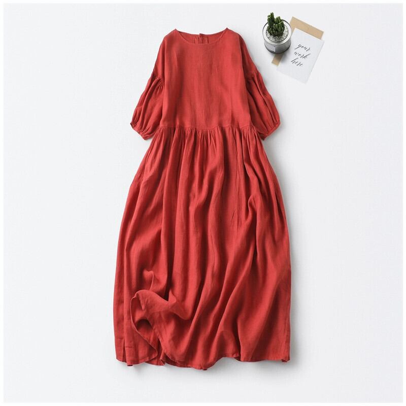 eign trade counter ブランドテールグッズ女性の ese 綿とリネン半袖ベビードールドレス夏ルーズラミーパフスリーブドレス コットン サマー 夏物 sine68063506297
