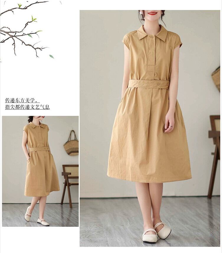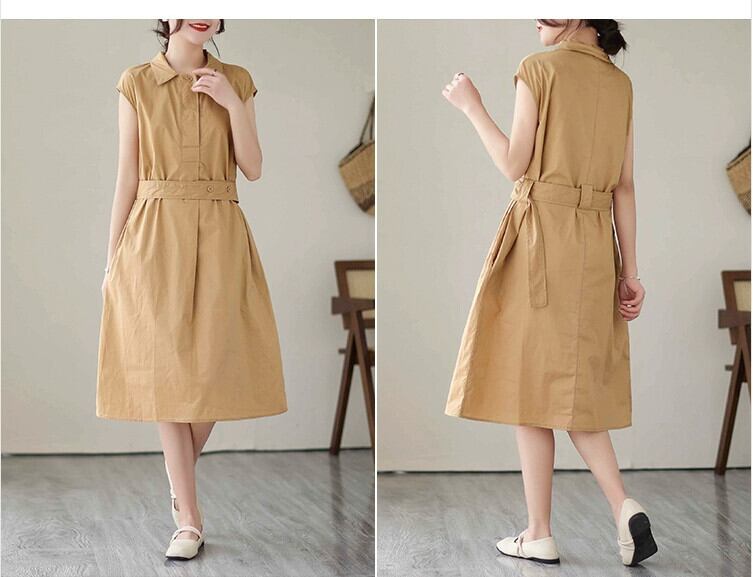 クリアランスカウンターストア引き出し最終在庫レディーススタイル通勤気質ルーズウエスト半袖シャツドレス sine30761178955