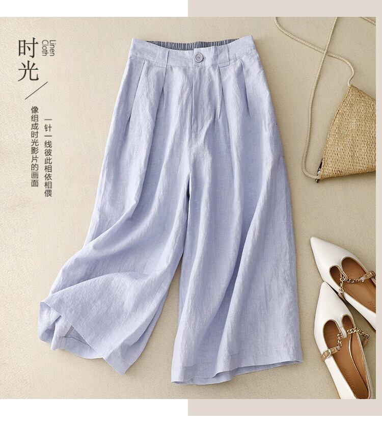 ビッグブランドテール商品のクリアランスカウンター除去綿とリネンのワイドレッグクロップドパンツの女性の夏のルーズハイウエストストレートリネンカジュアルパンツ コットン サマー 夏物 sine26686705664