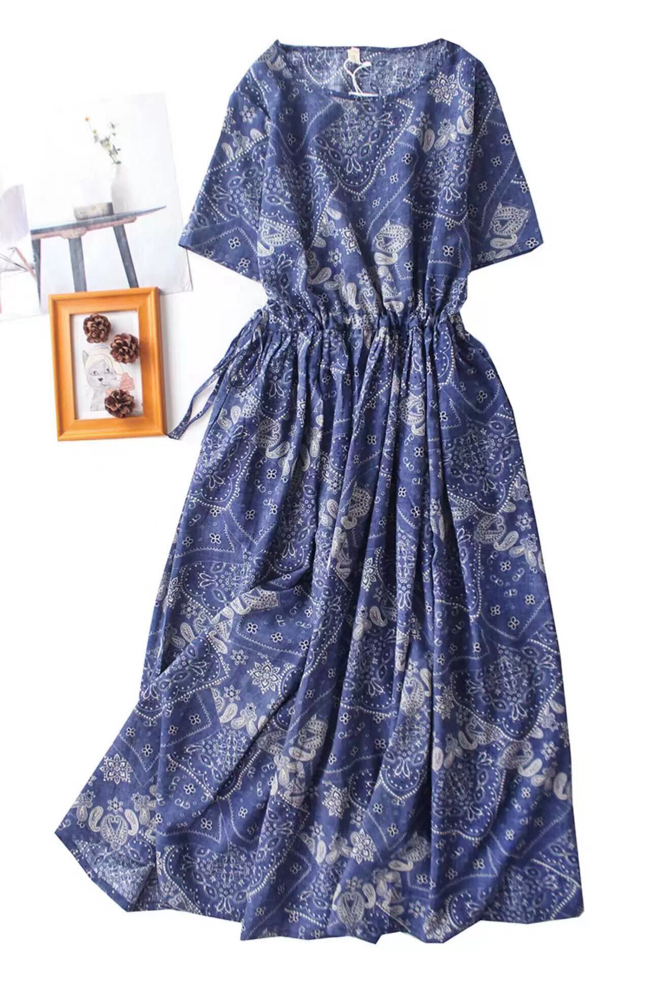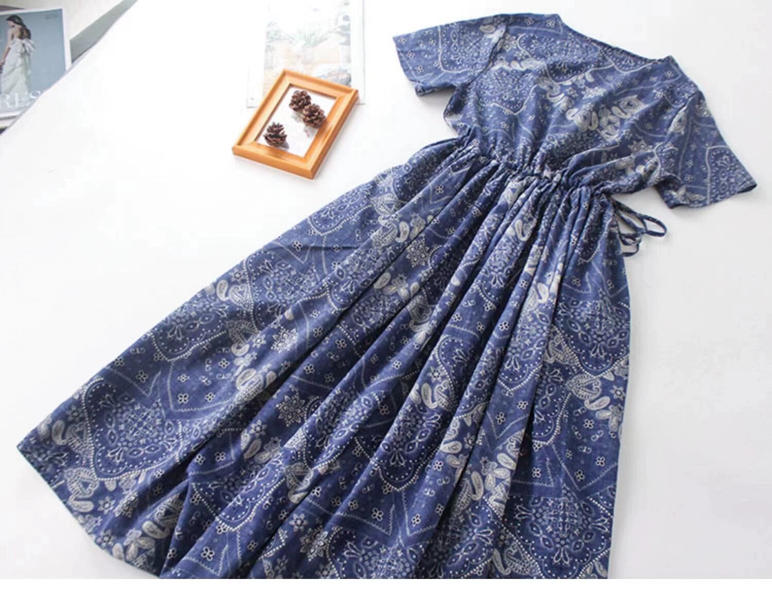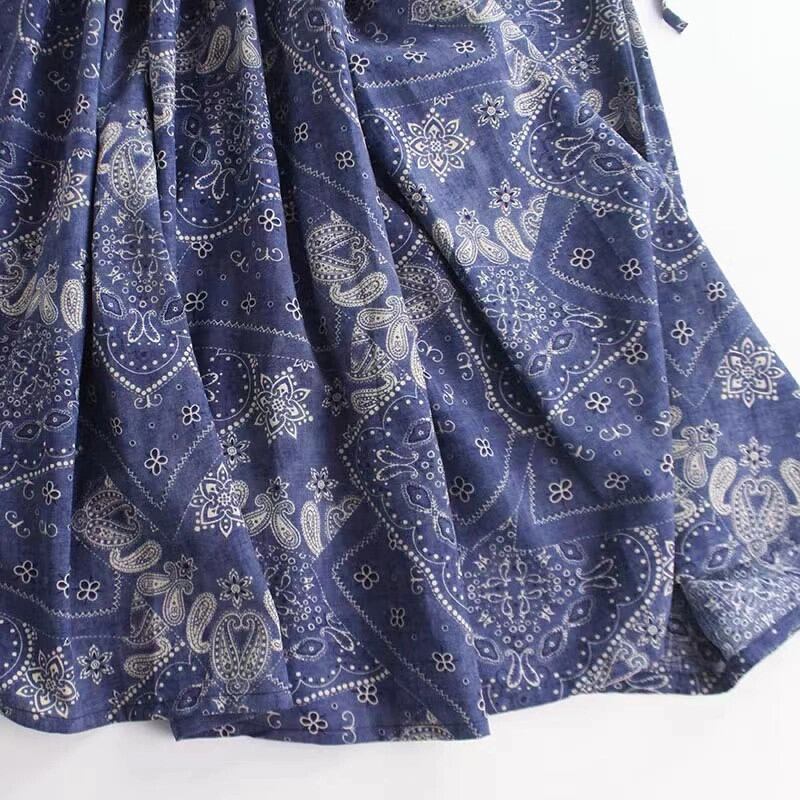 クリアランスカウンター最後の在庫レディースレトロコットンとリネンプリントドレスウエストレースアップリネンロングスカート sine73852665303