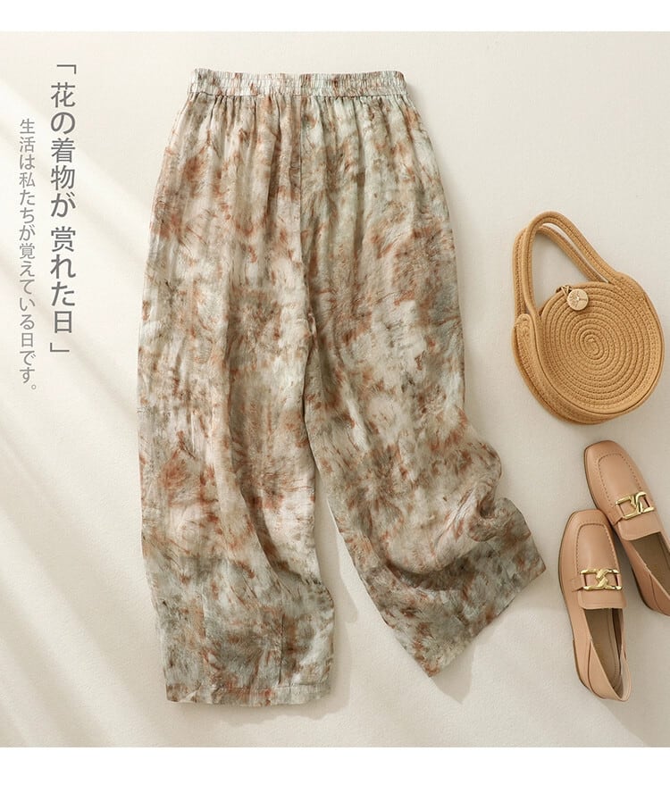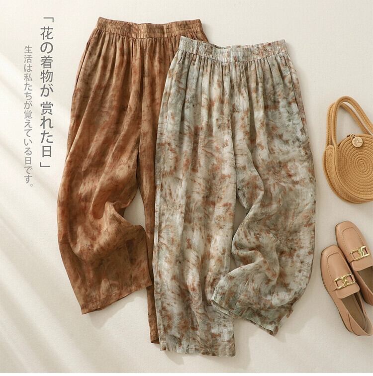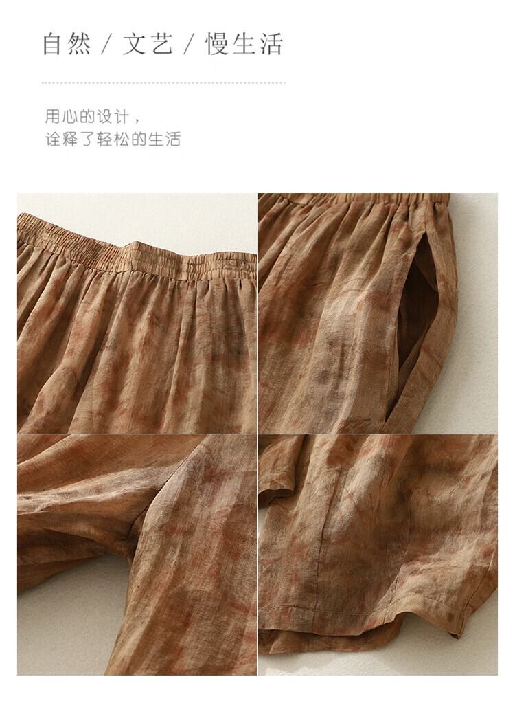 クリアランスクリアランスカウンター牛グッズ撤去レトロプリントラミーブルマーレディースゆったりリネン9点ワイドパンツ薄手 ショーツ sine36799351921
