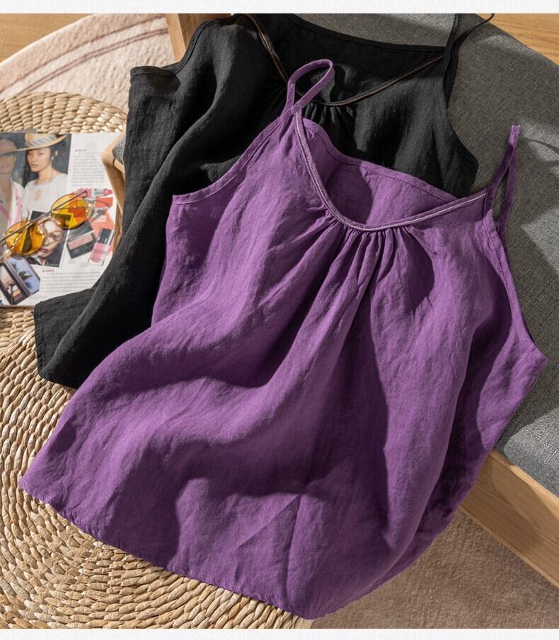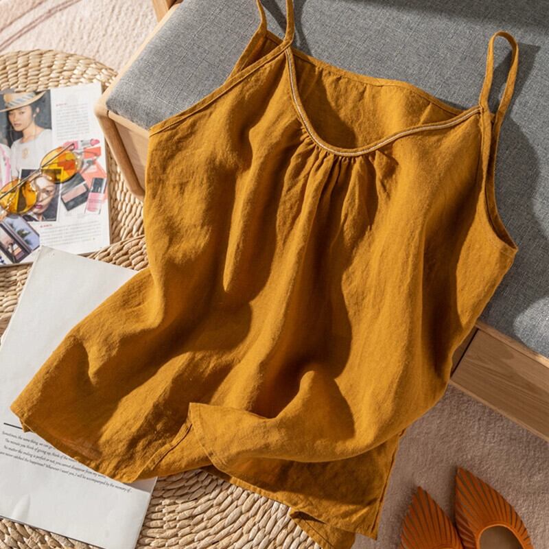 クリアランスリーク〜eseオリジナルシングルラミーインナーノースリーブトップレディース、ゆったりスリミング薄手コットンリネンキャミソール sine46875396312