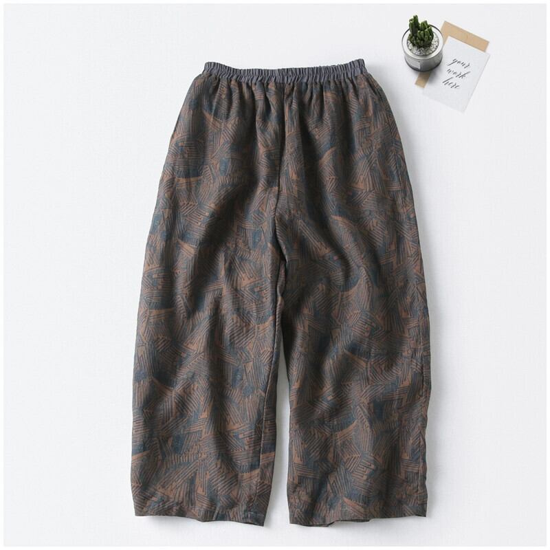 永貿易輸出ビッグブランドテール商品キャビネットから削除エスニックスタイルプリントコットンとリネンワイドレッグパンツ女性ルーズカジュアルリネン9点パンツ sine2099783919