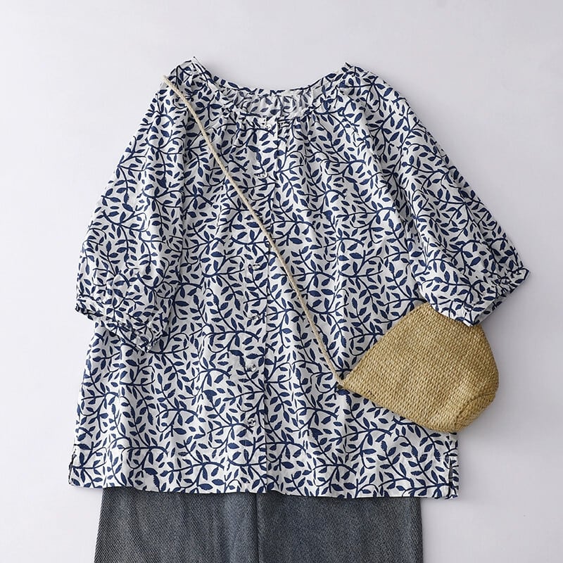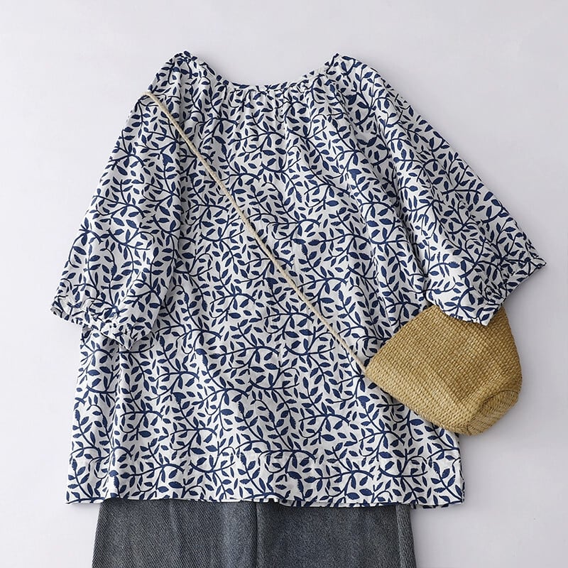 クリアランスクリアランスカウンター牛グッズ除去レトロ花柄リネンシャツトップ女性のルーズコットンとリネンの人形シャツ Tシャツ sine4050546839