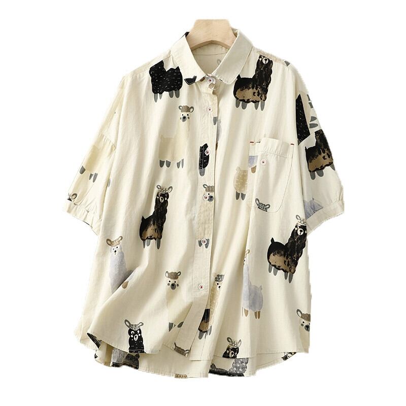 貿易輸出大手ブランドのテール商品が年齢削減のためにキャビネットから撤去され、漫画プリントの半袖シャツの女性、ゆったりとしたカジュアルなシングルブレストのトップス sine41945094541