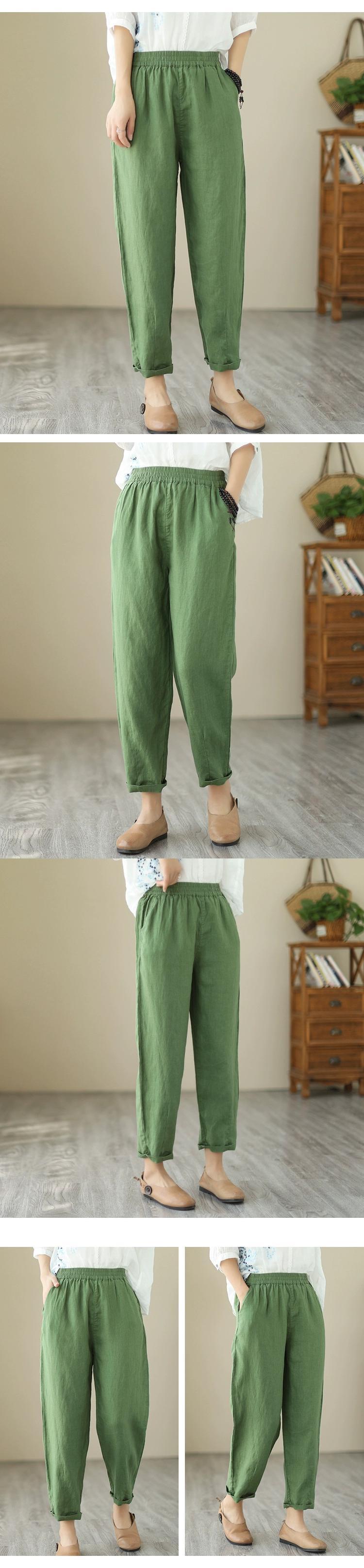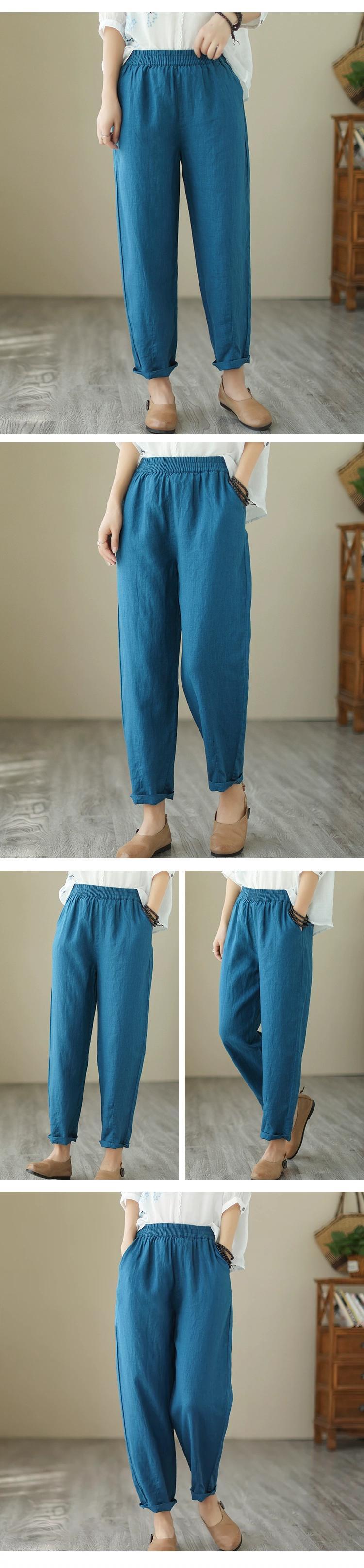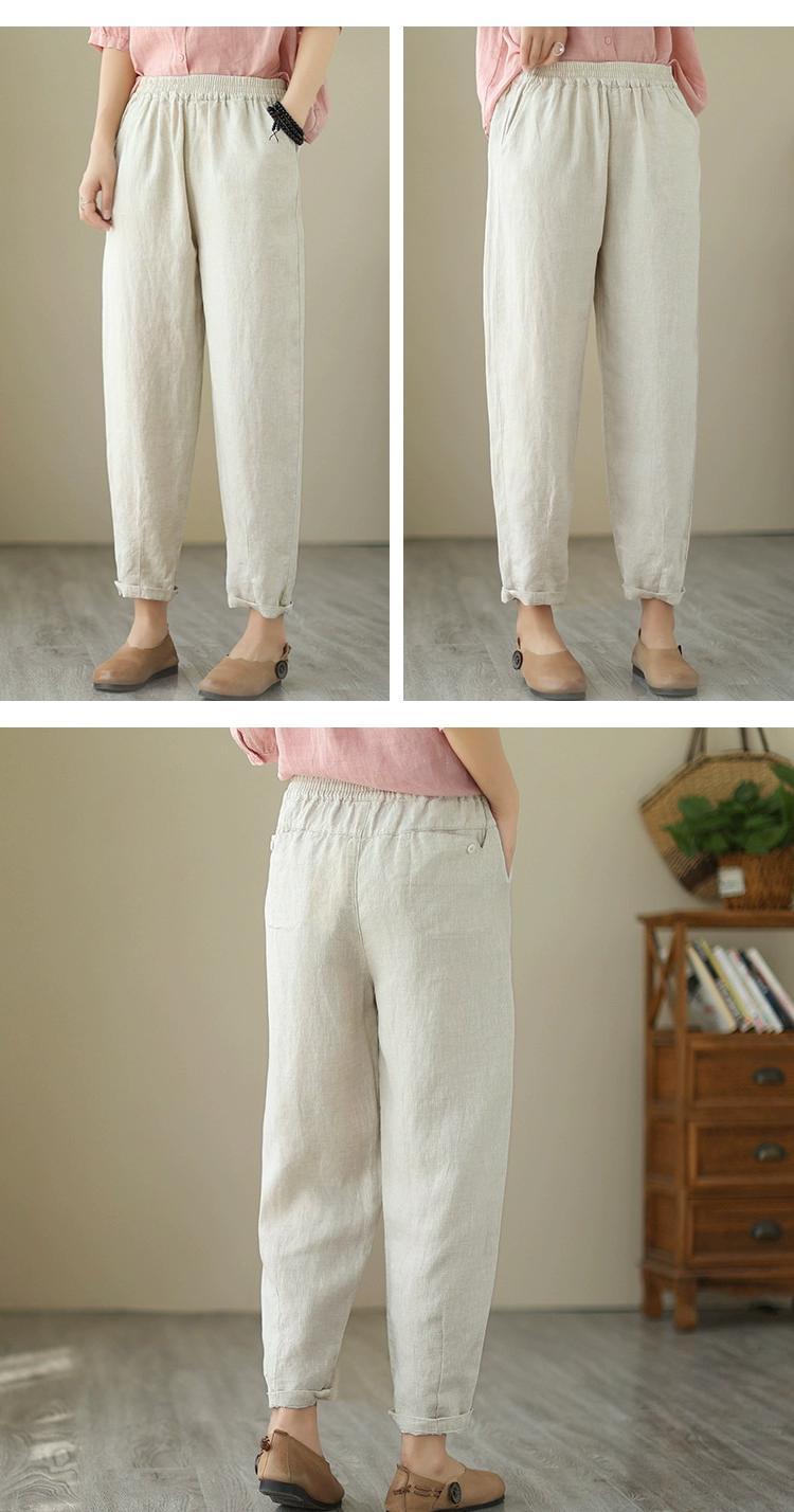 クリアランス漏れ〜カウンターの端にあるシングル女性のカジュアルなハイウエストのコットンとリネンのハーレムパンツ、ゆったりとした9点のリネンレッグ大根パンツ sine31917915684