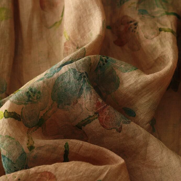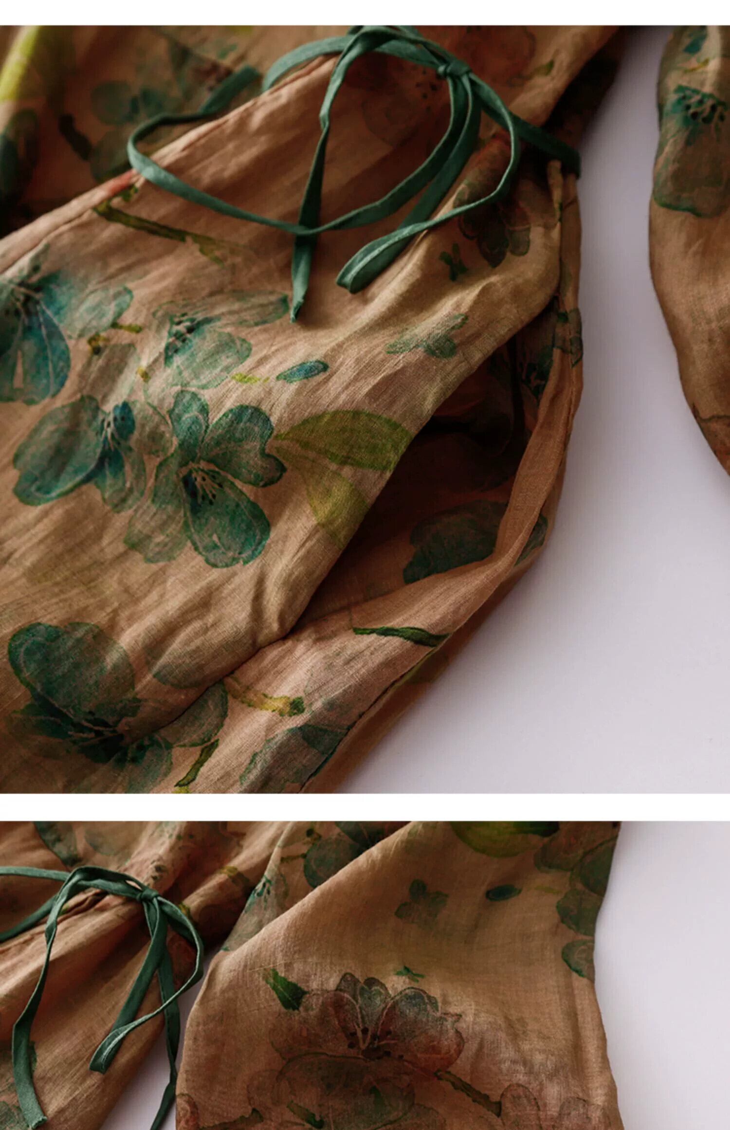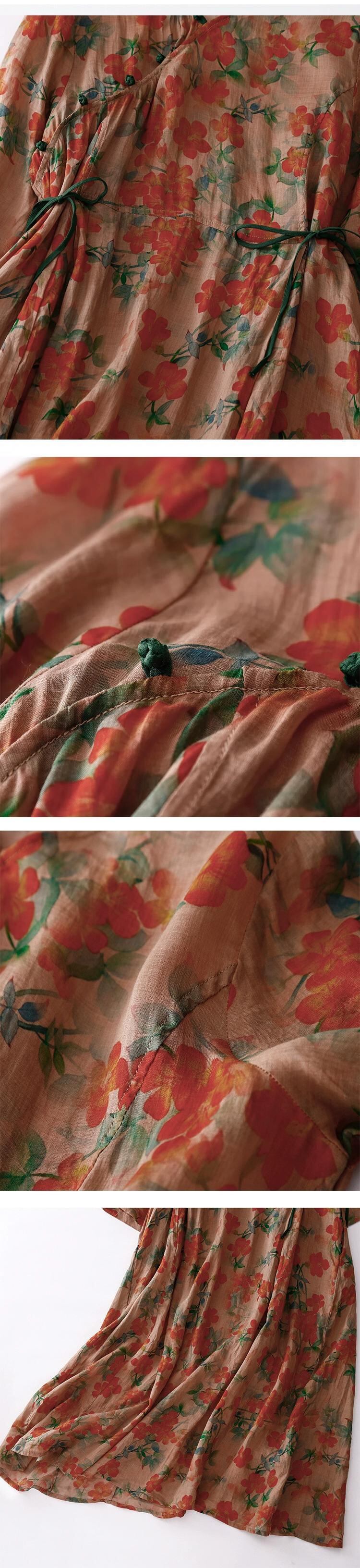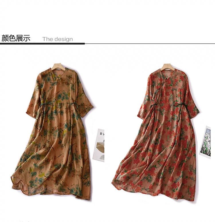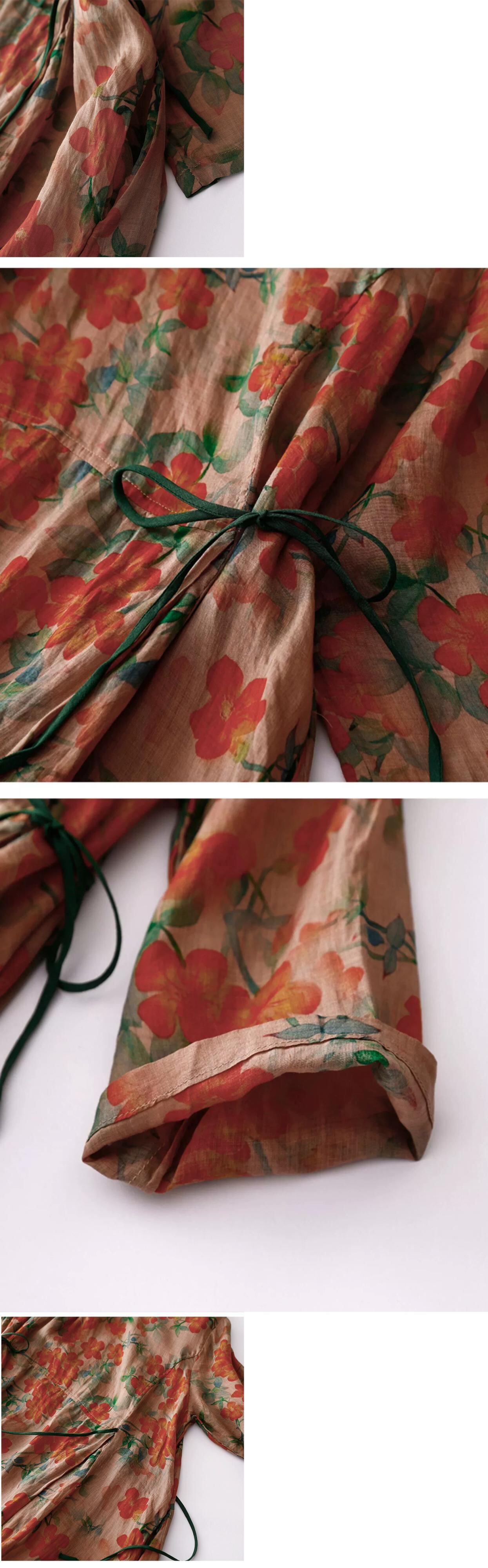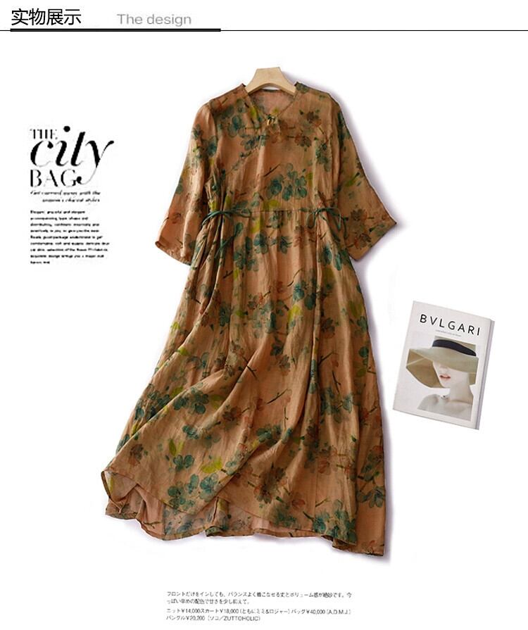 モールビッグネーム撤退最終在庫斜めラペルバックルラミードレス女性のウエストレースアッププリントコットンとリネンロングスカート sine1765165166