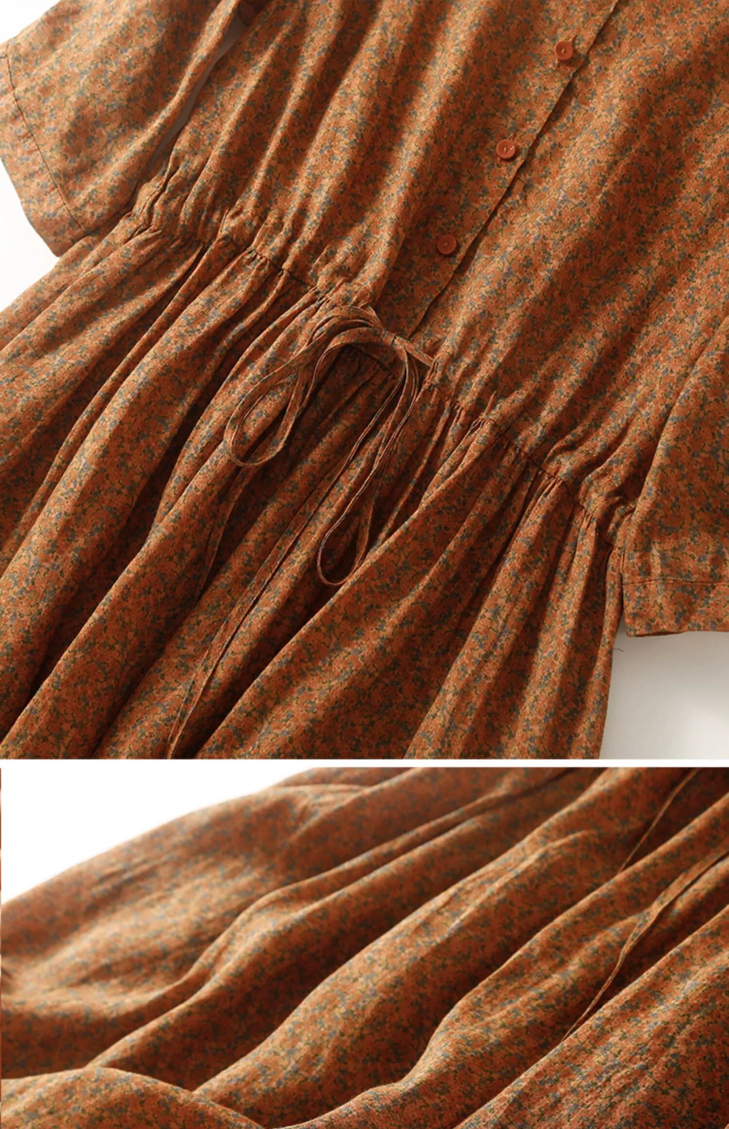 Eign Trade Export Big-name Single Women's Clearance Doll Collar Linen Wide Hem Shell Long スカートゆったりとした花柄のコットンとリネンのドレス ロング sine33135215279