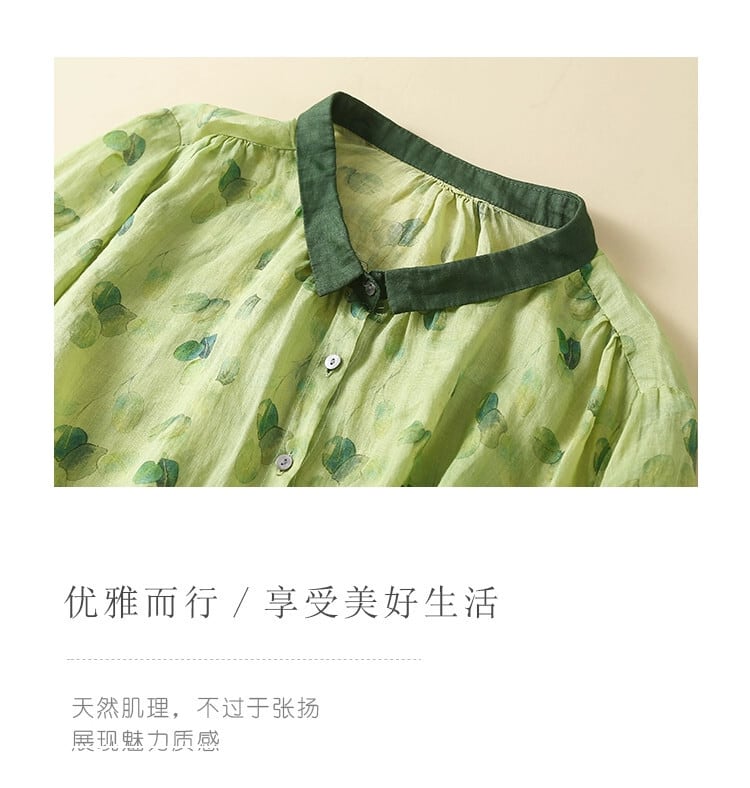 eign trade ese オリジナルビッグブランドカットラベルコットンとリネンシャツレディースカジュアルレトロプリント七分袖薄手リネントップ sine43725476490