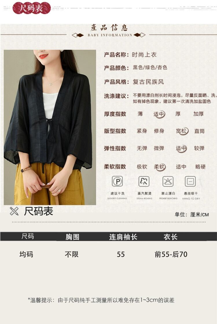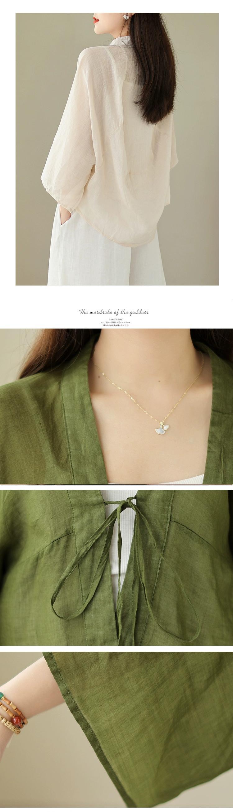 クリアランスリーク〜カウンター最後の在庫中国ラミー日焼け止めシャツ女性の夏のルーズレースアップコットンとリネンカーディガントップ サマー 夏物 sine40019701157